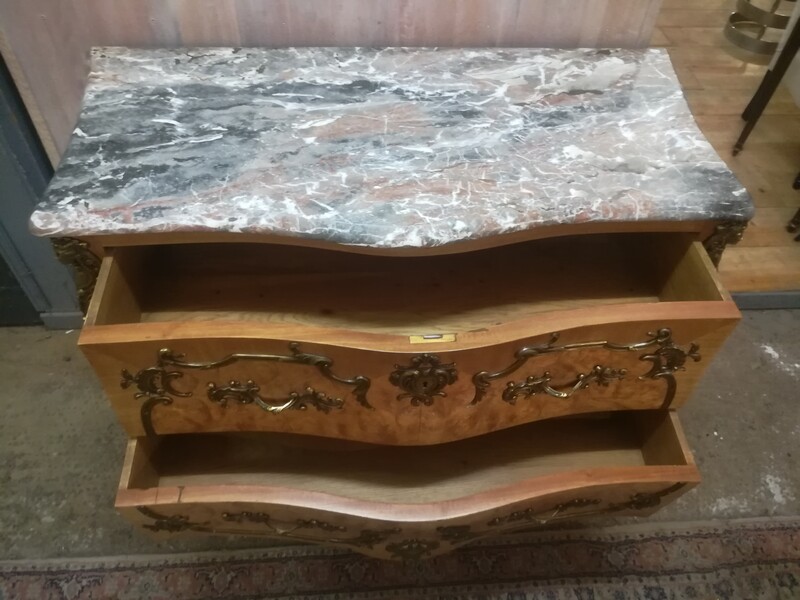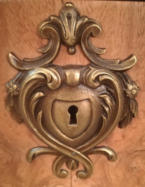 Elm burl and gilt bronze trim Louis XV style curved chest