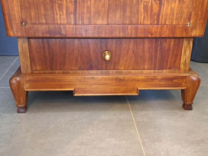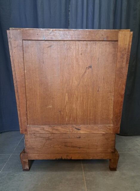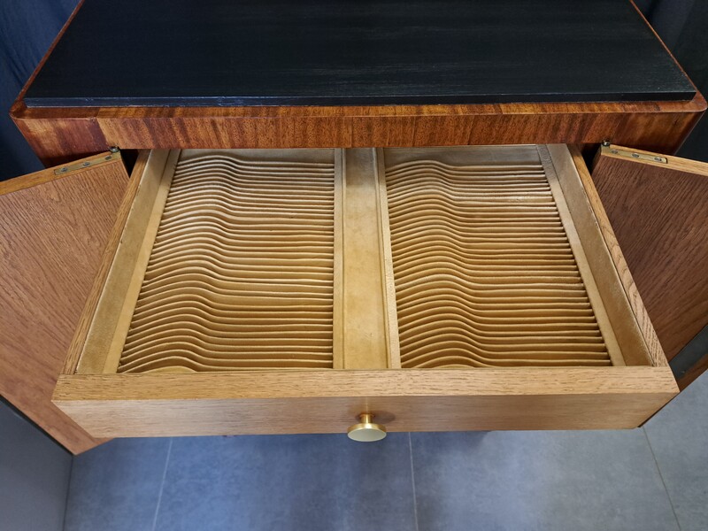 Art Deco mahogany, oak and marquetry cutlery cabinet
