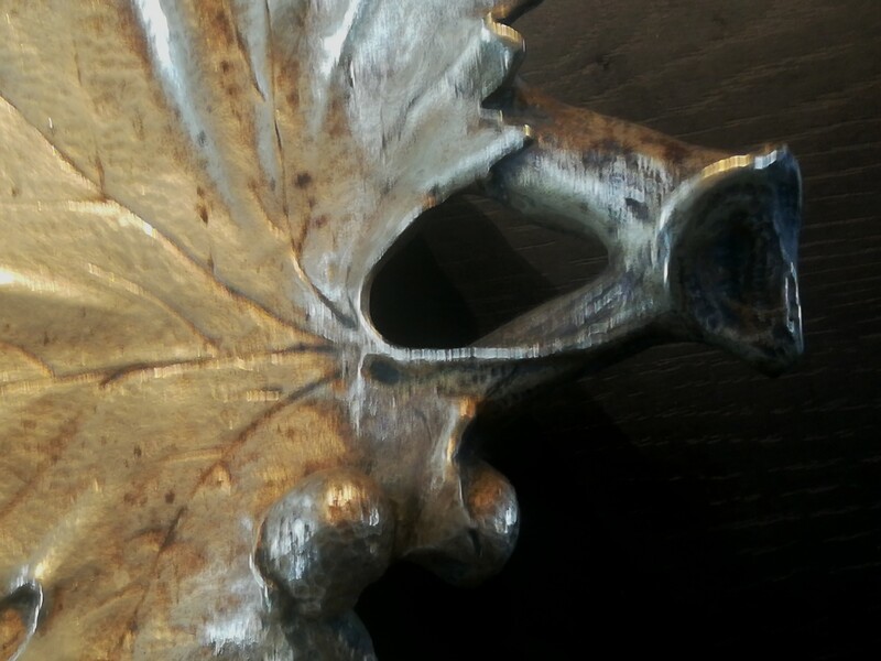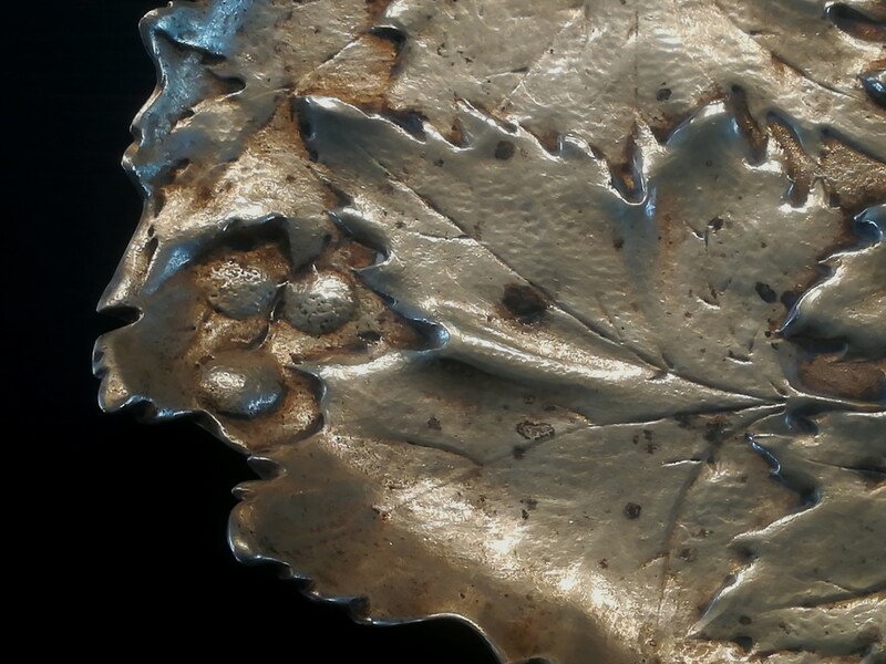 Large bronze empty pocket decorated of poplar leaves