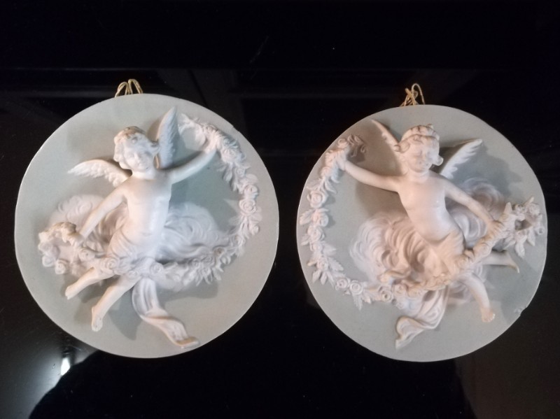 Pair of Wedgwood style biscuit porcelain medallions