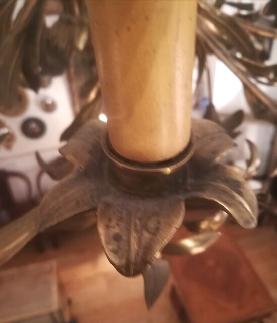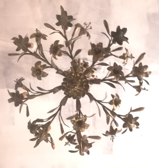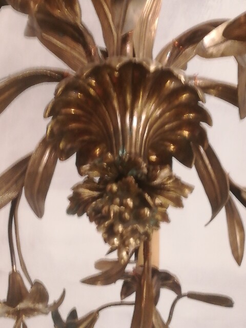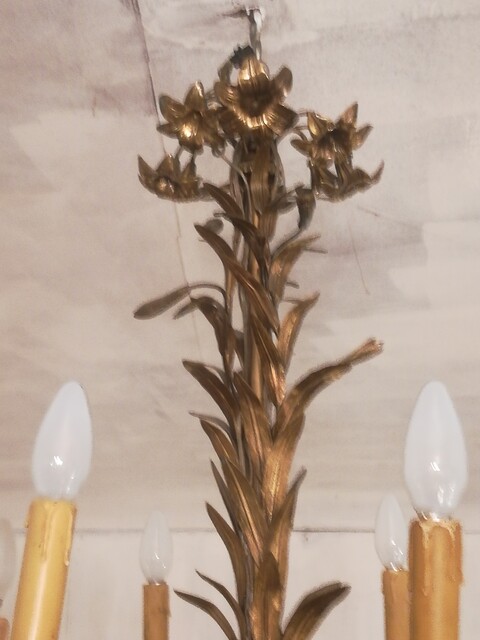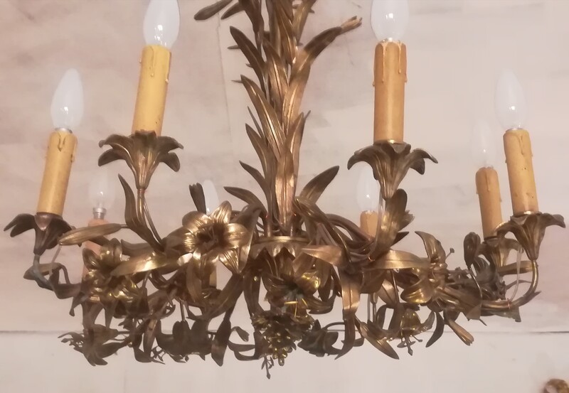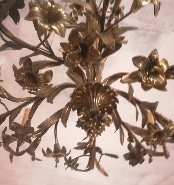 gilded Bronze and brass lilies and leaves chandelier