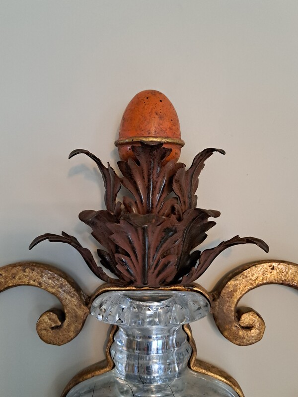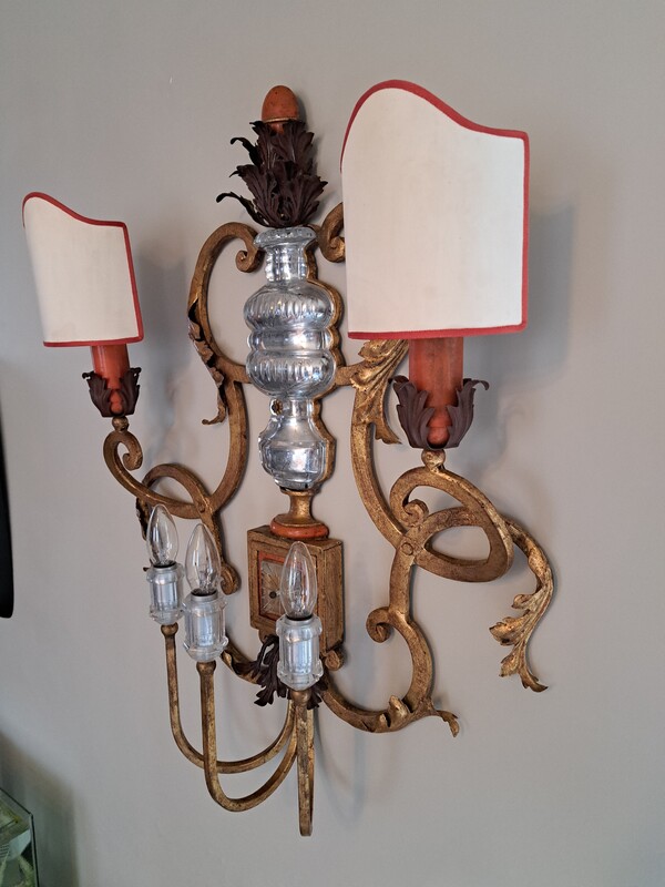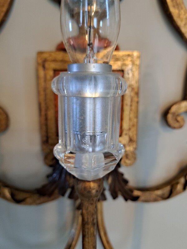 Important Baguès wall light in gilded wrought iron and molded glass