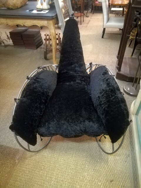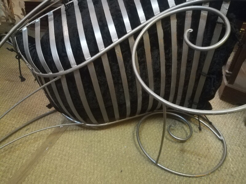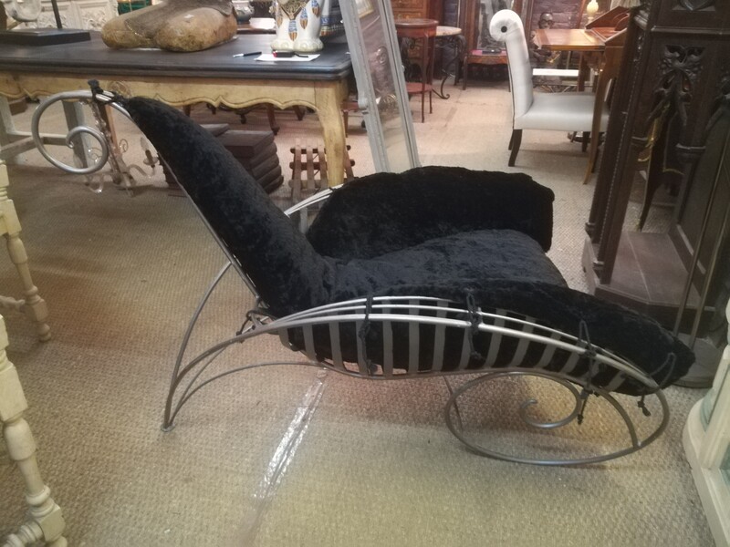 Metal and velvet André Dubreuil style «spiral» armchair