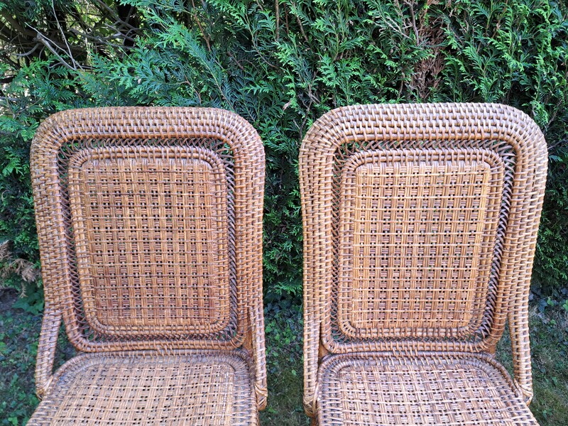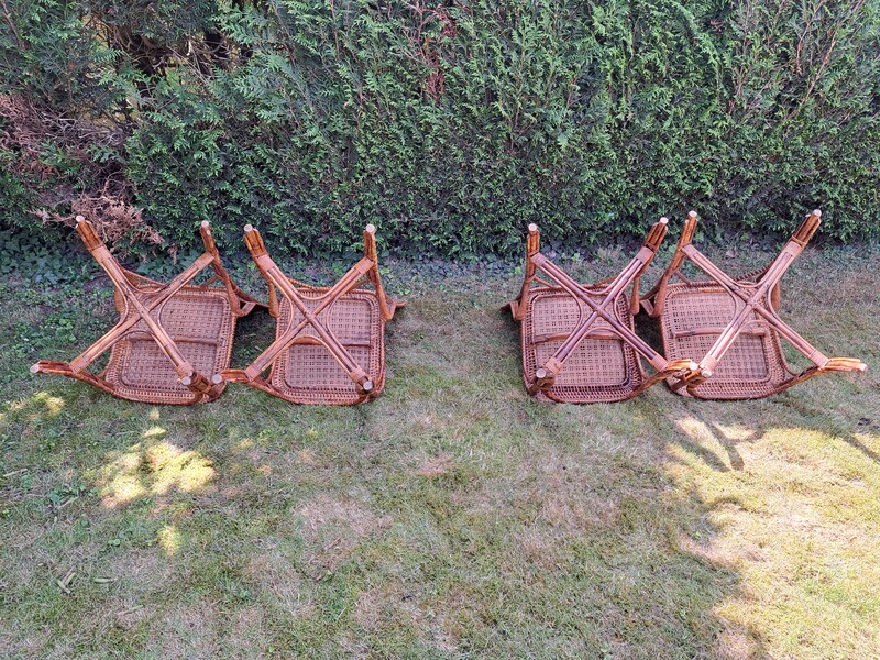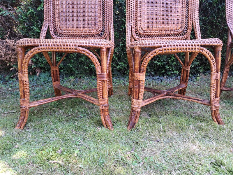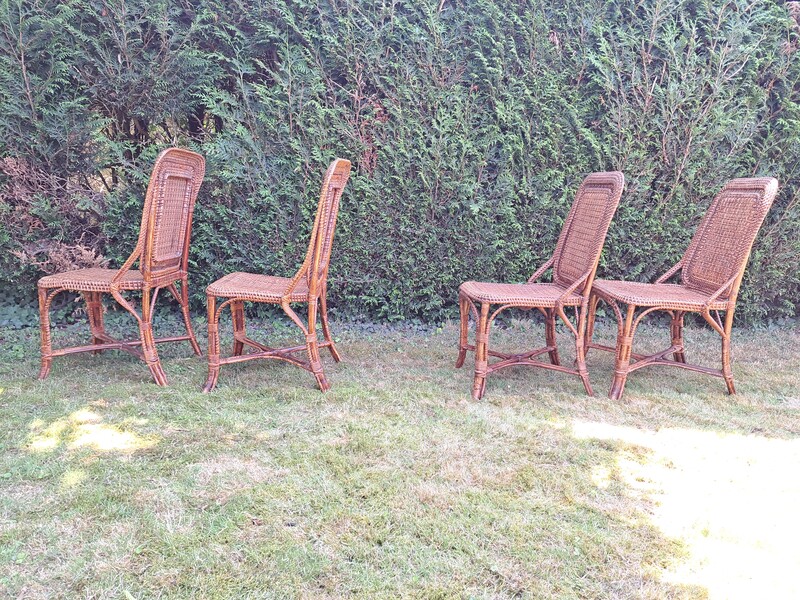 Set of 4 chairs by Perret and Vibert in bamboo and varnished rattan