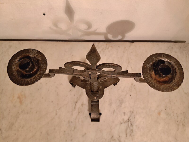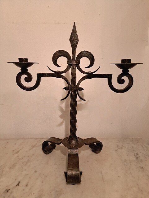 Lily flower candelabra in black wrought iron