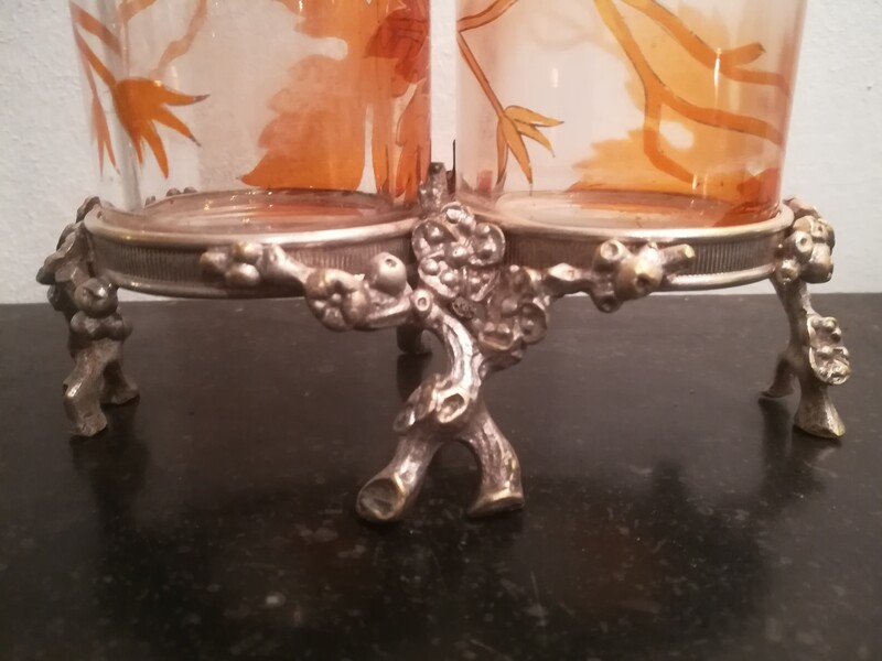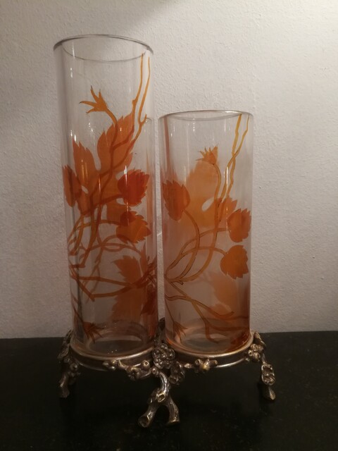 Crystal and silvered bronze mount Baccarat duo vases