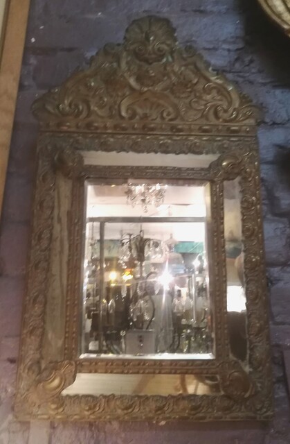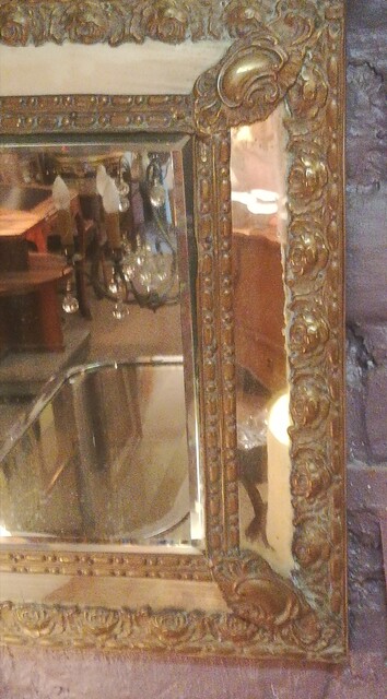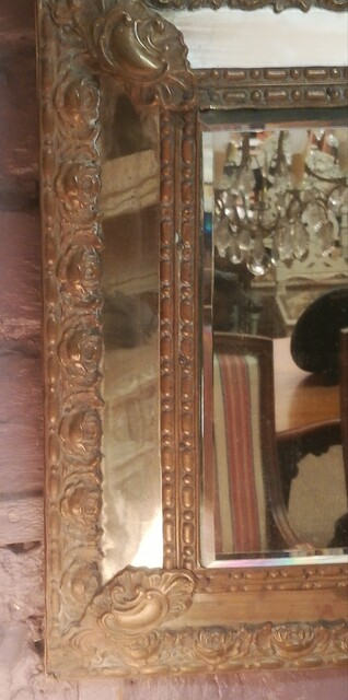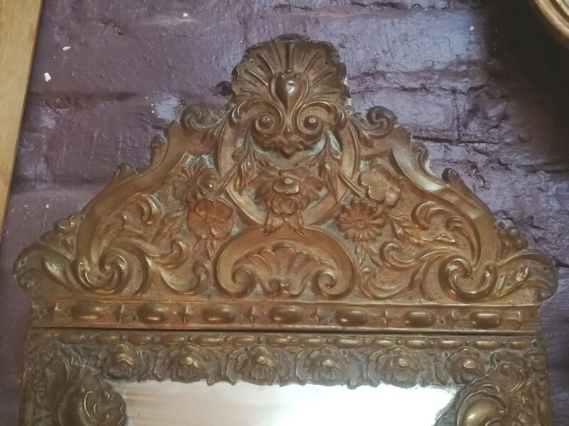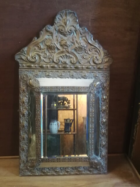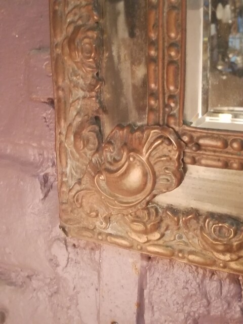 Embossed copper with glazing beads mirror