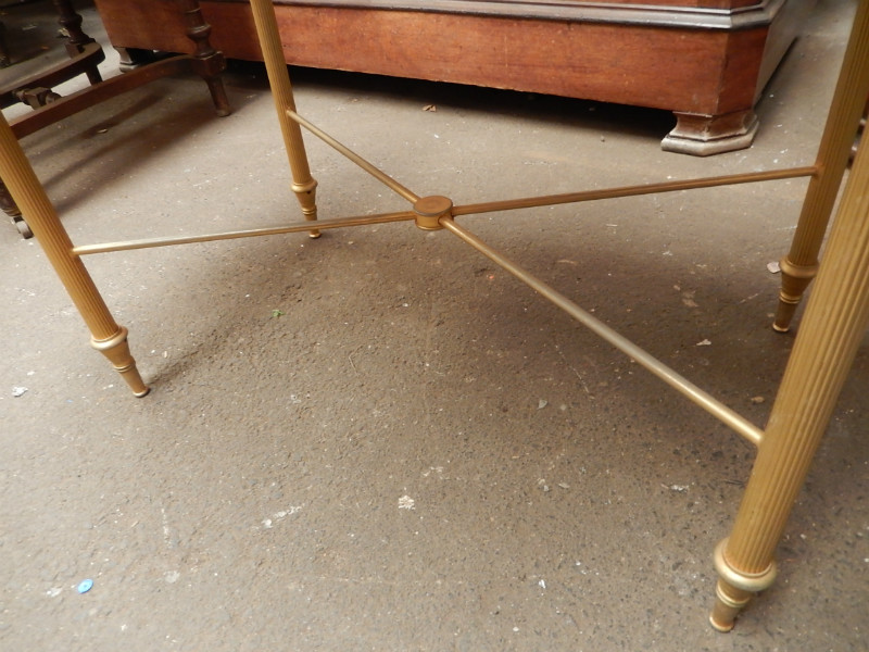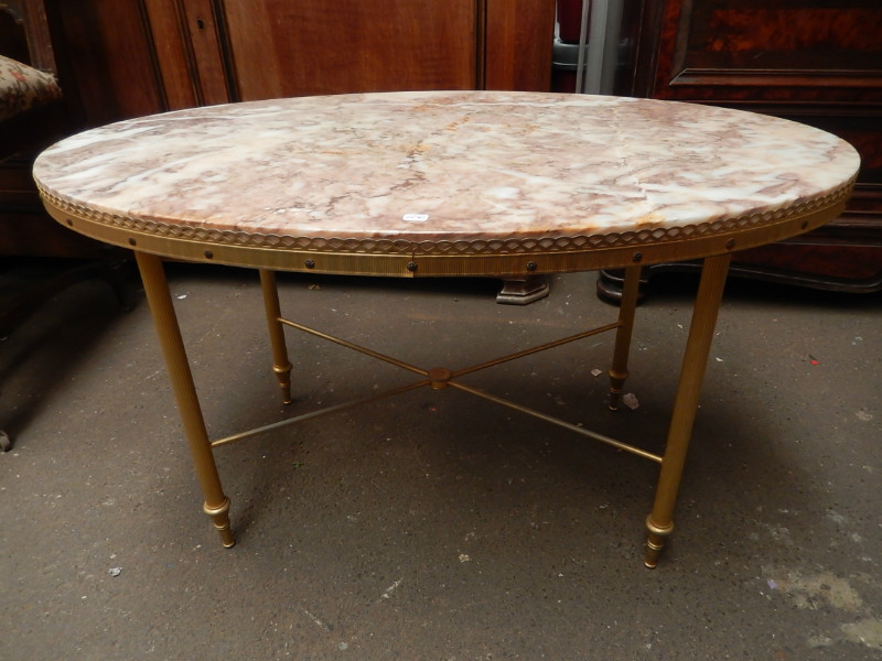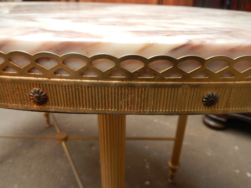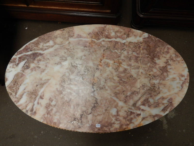Gilded iron and marble top oval coffee table