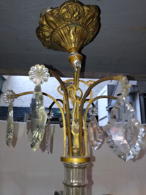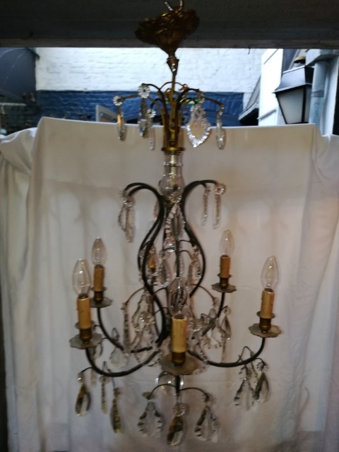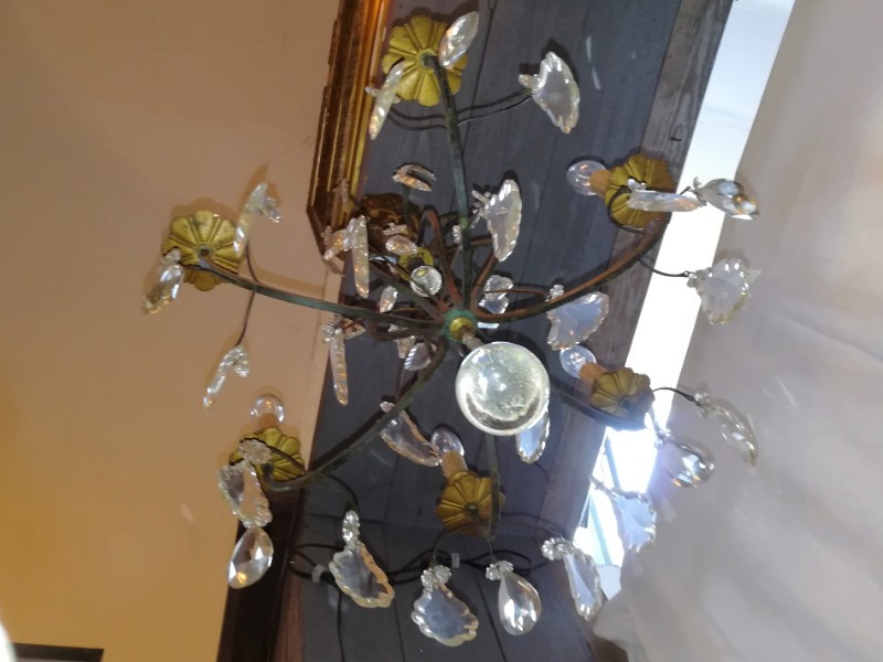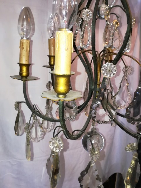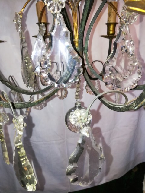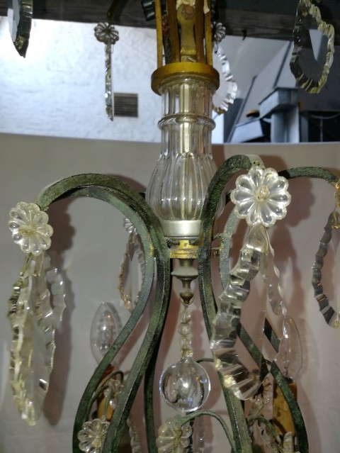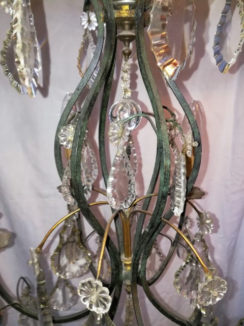 Green patinated bronze and pendants 6 lights chandelier