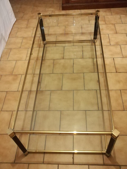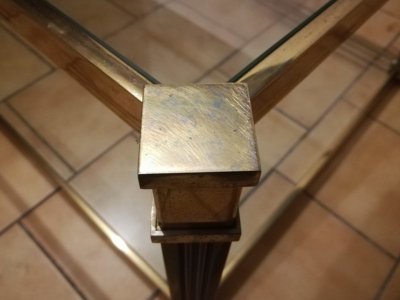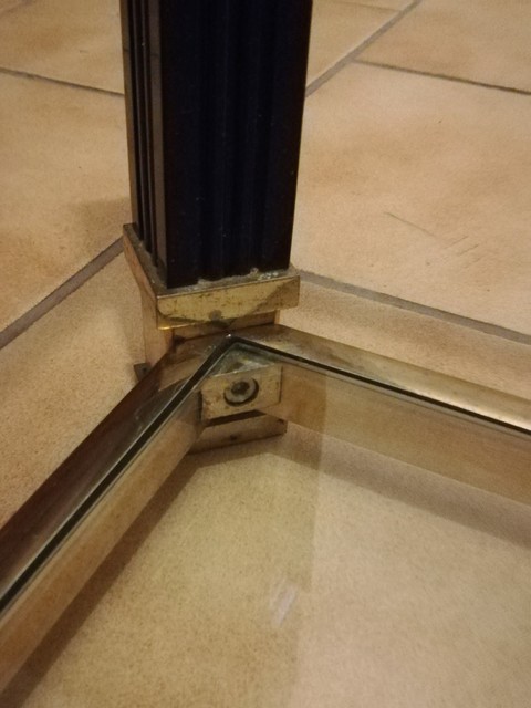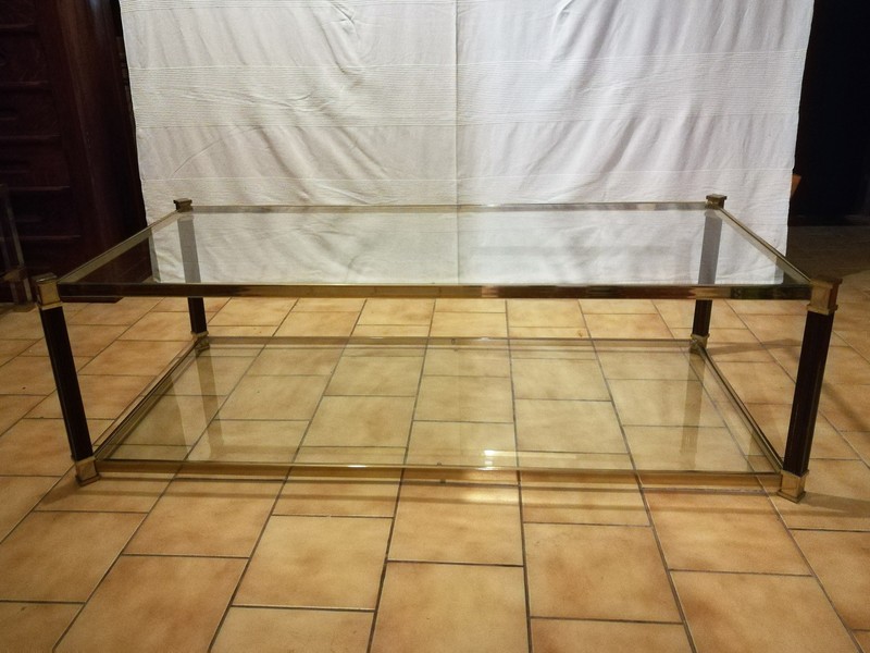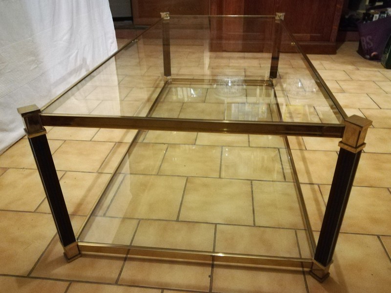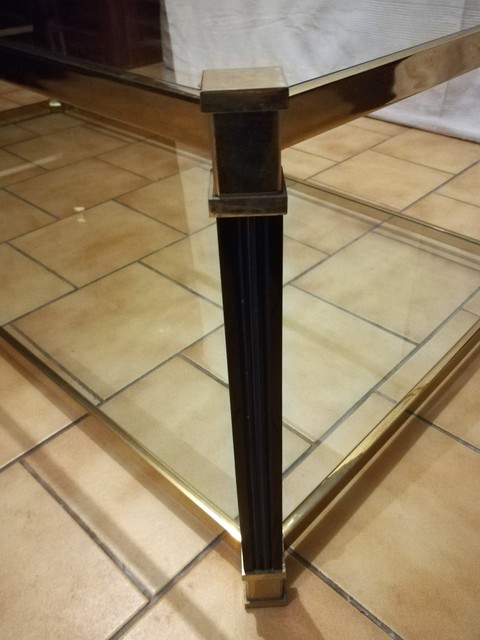 Black lacquered and brass coffee table with glass tops