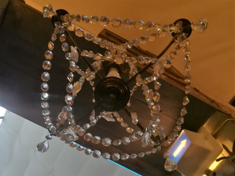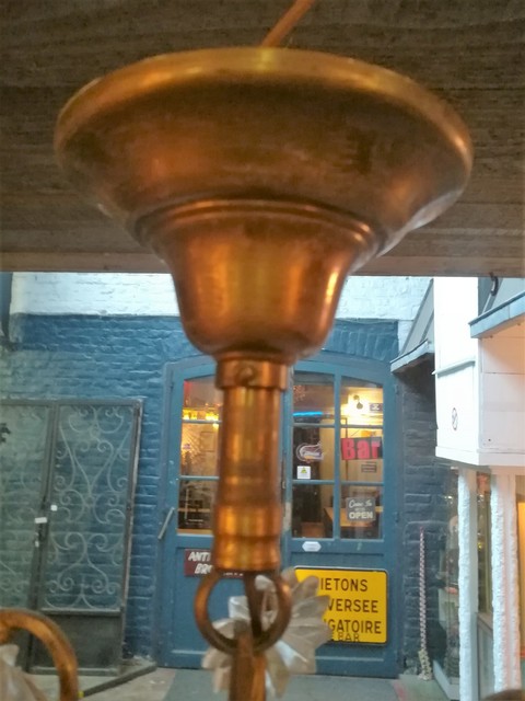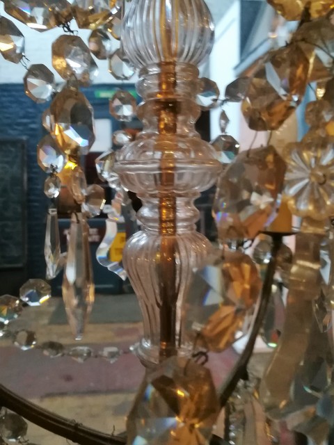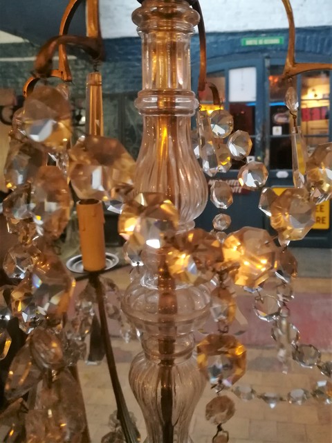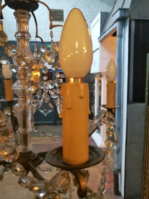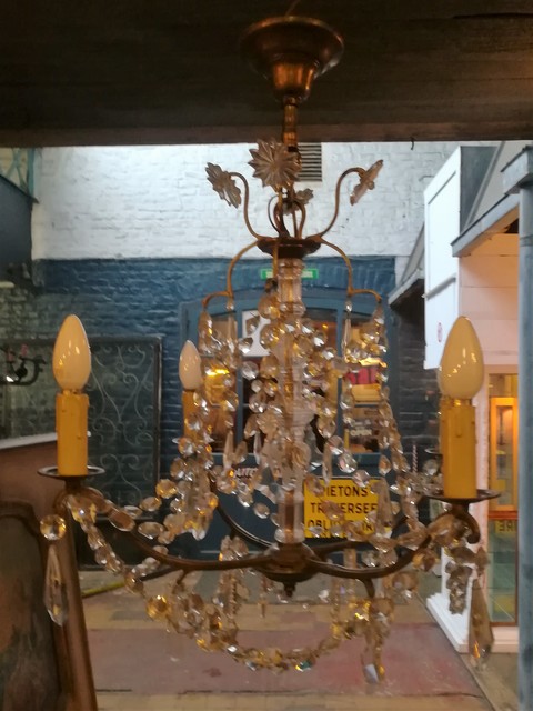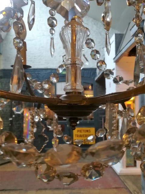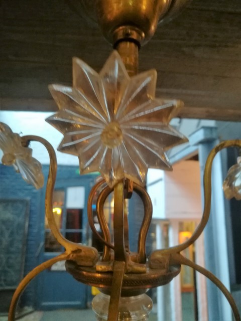 Brass and cut glass pendants 4 lights chandelier