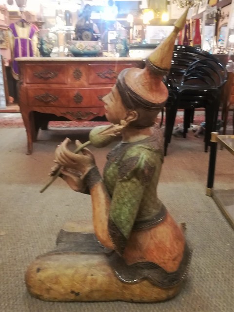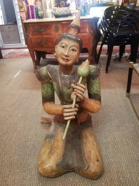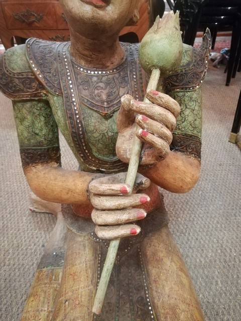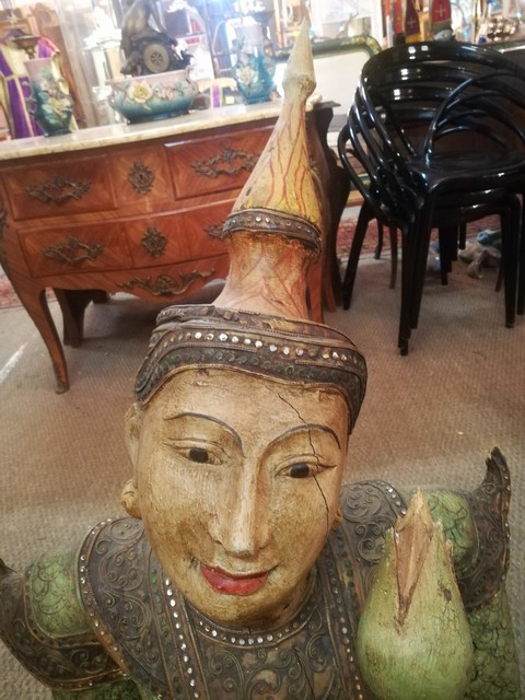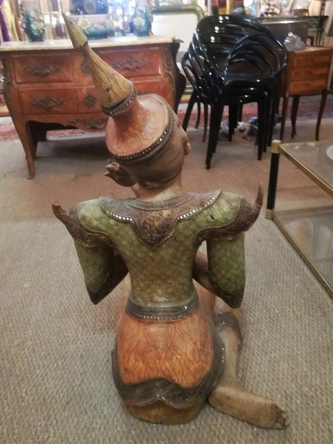 Polychrome wood and strass thaï statue