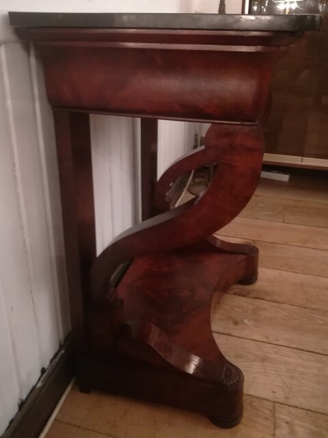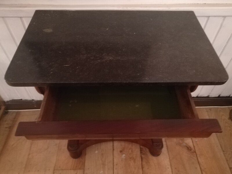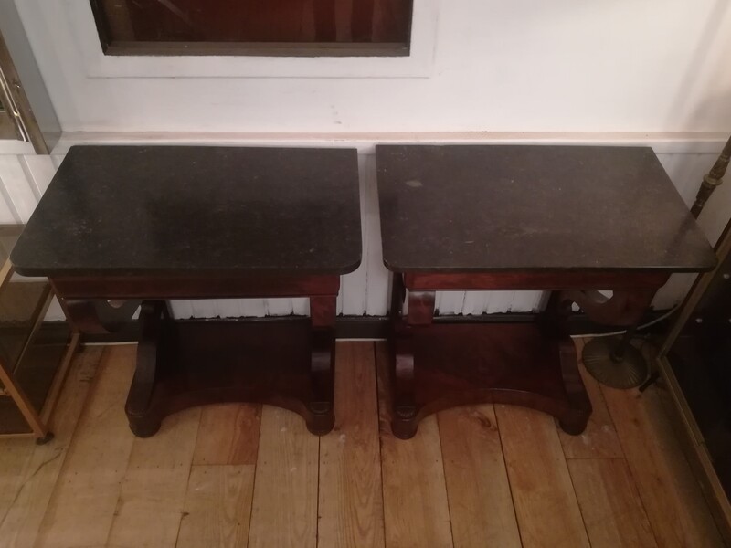 Pair of mahogany and black granite Restoration consoles
