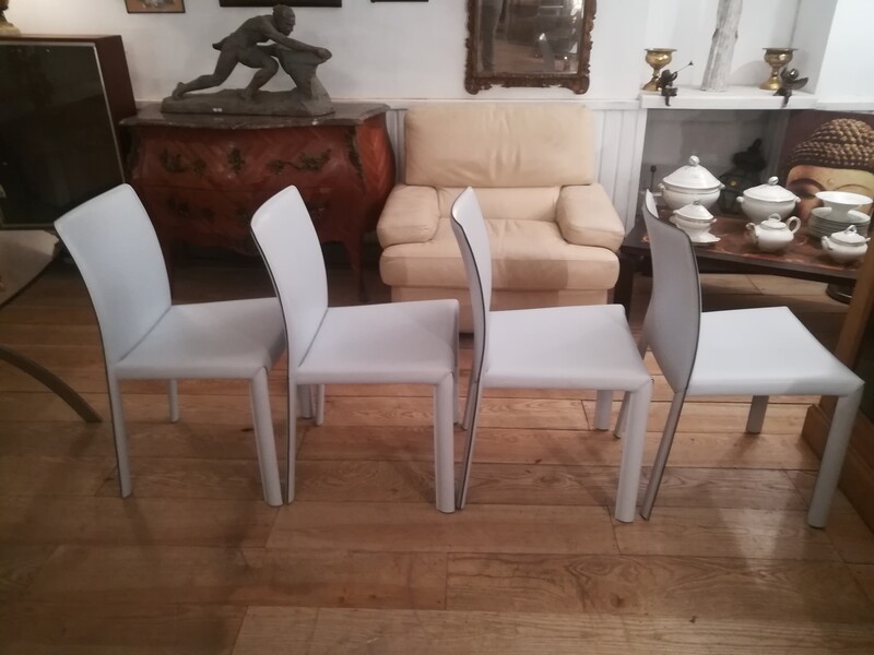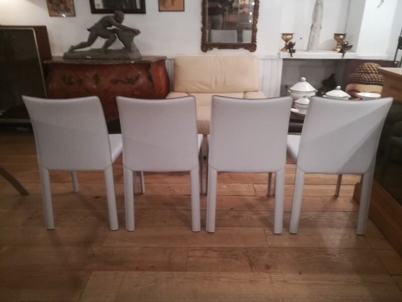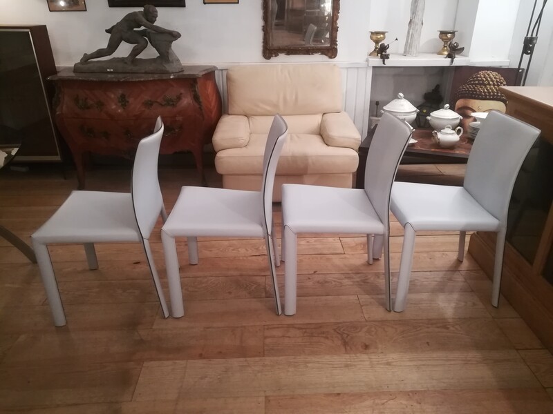 Set of 4 "Angel" chairs in pale blue leather by Bonaldo
