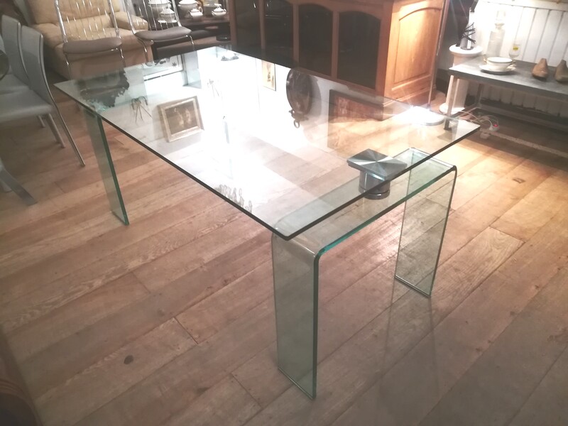 Tempered glass and chromed steel Cattelan "Azimut" table