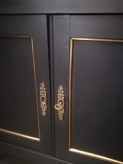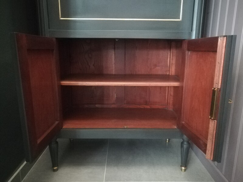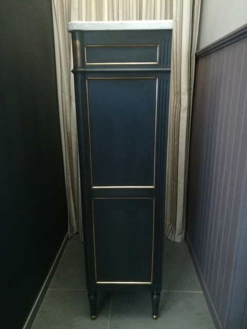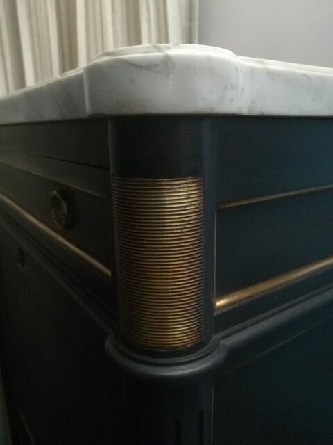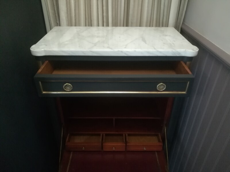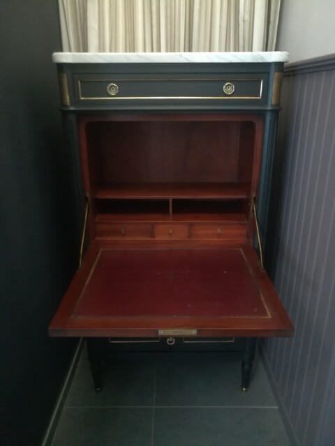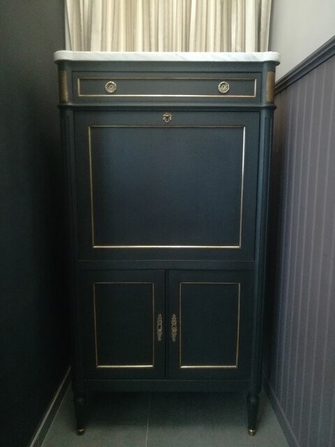 Secrétaire style Louis XVI en bois patiné noir et laiton