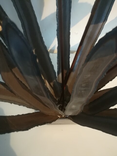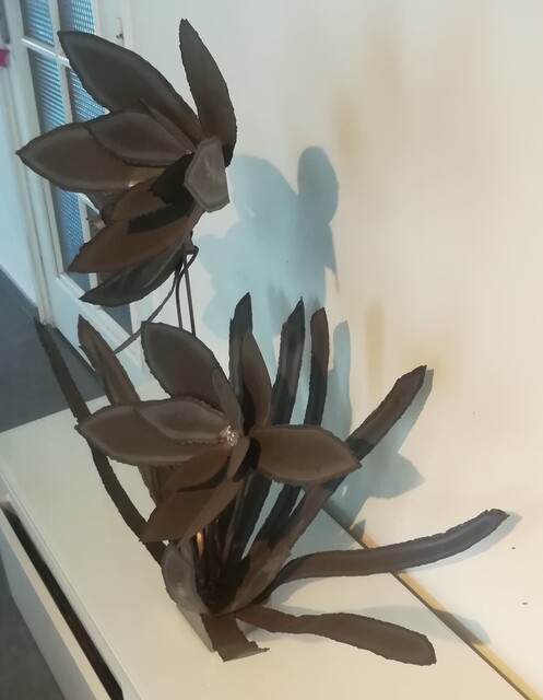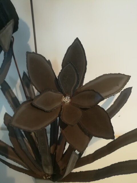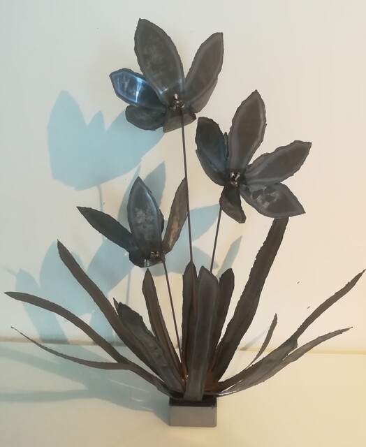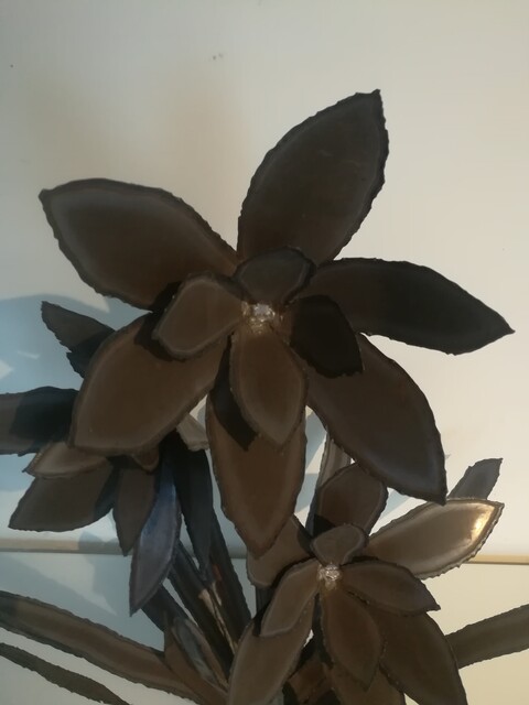 Metal floral composition on steel base