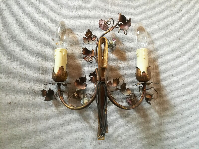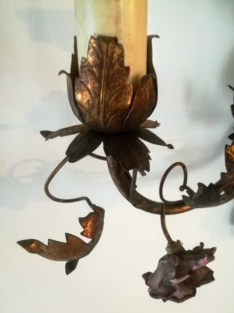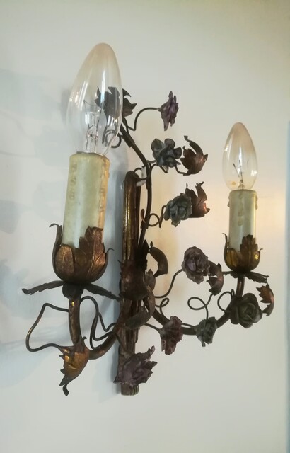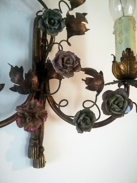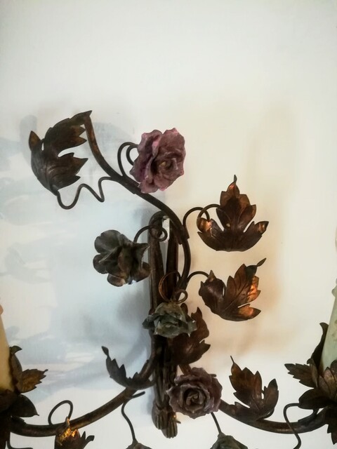 Bronze and brass Louis XVI style porcelain flowers wall lights