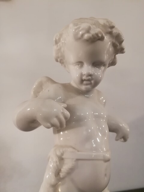 White porcelain cherub statue