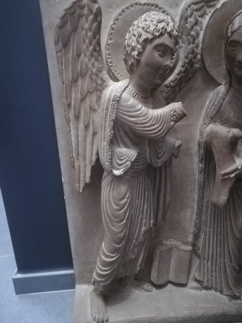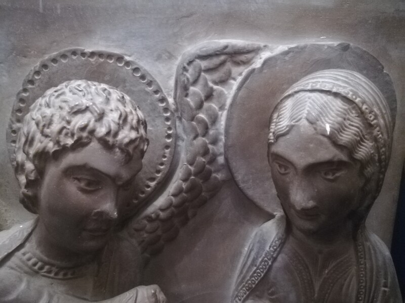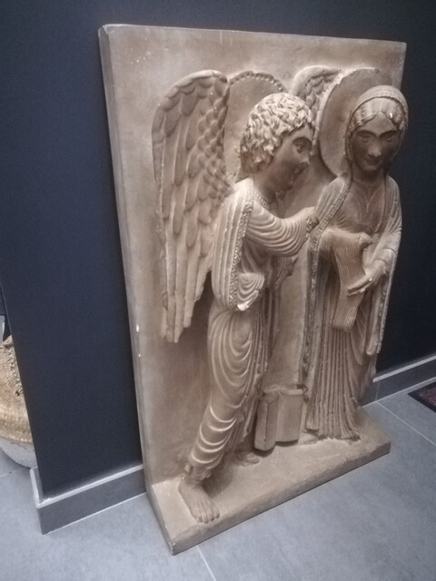 Patinated plaster Louvre reproduction of the Gabriel angel and Maria