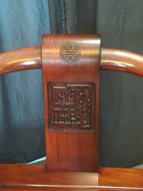 Pair of exotic carved wood chinese armchairs