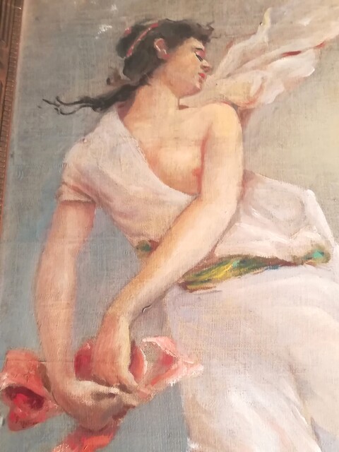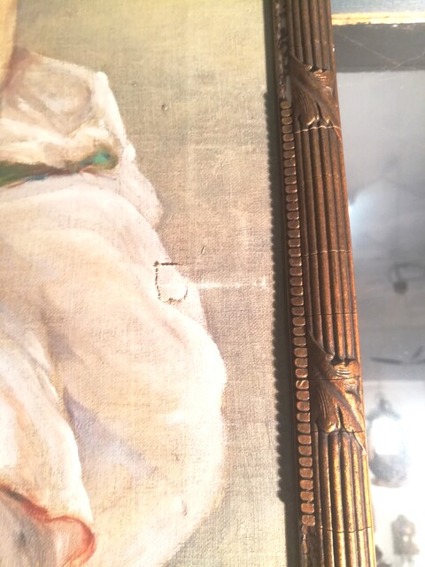 Oil on convas «draped woman» in a wood/gilded plaster frame