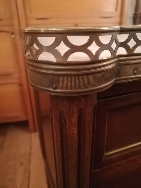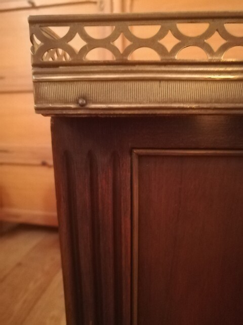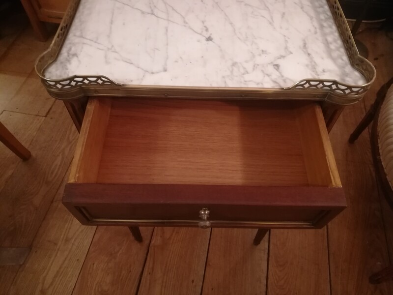 Mahogany and marble top Louis XVI bedside cabinet