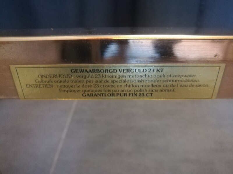 23k gold fine plate metal and eglomised glass coffee table