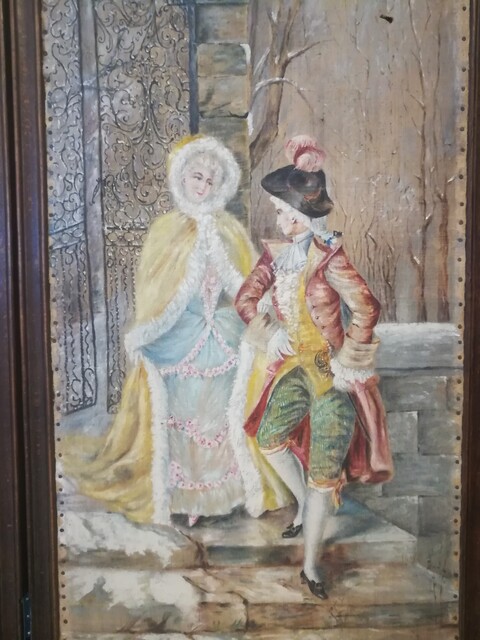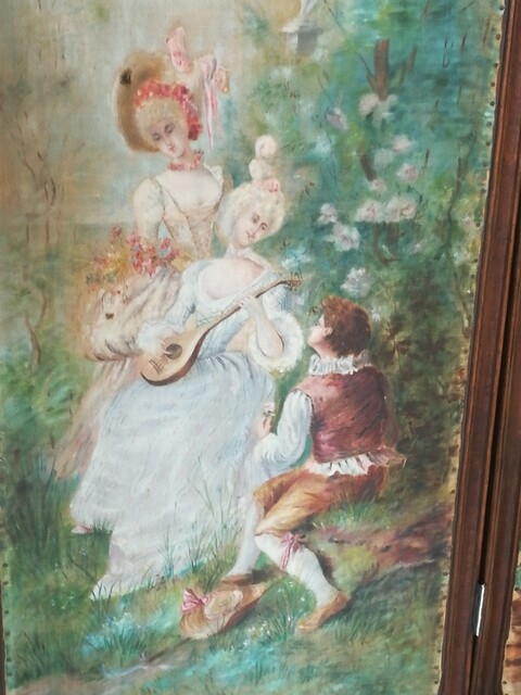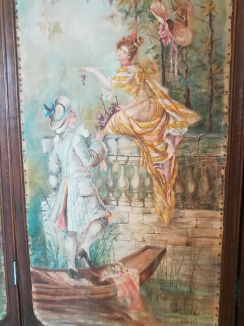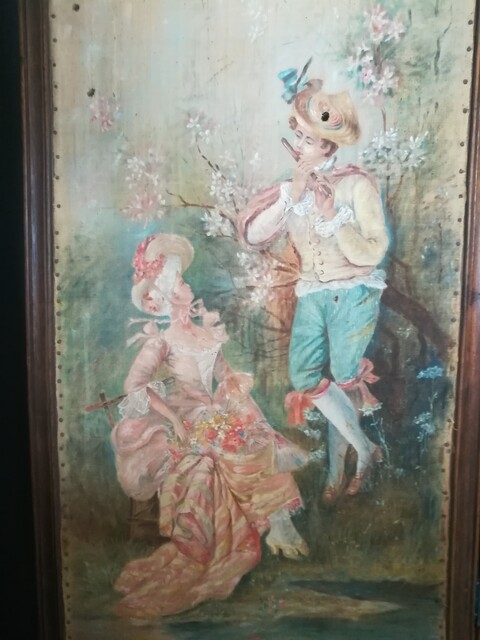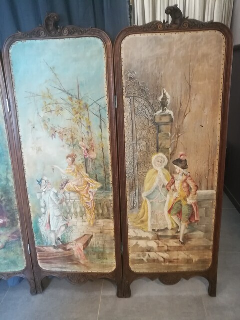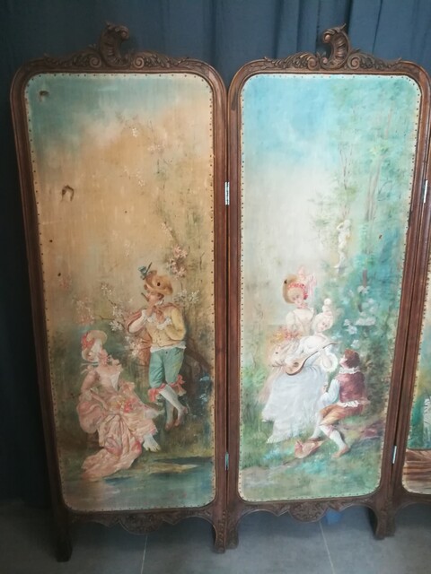 Louis XV style screen in oil painted canvas representing the 4 seasons