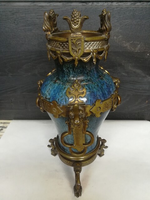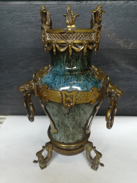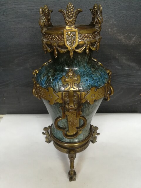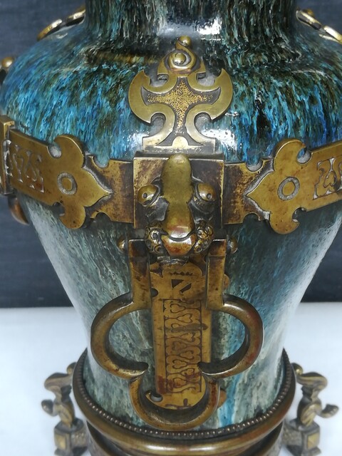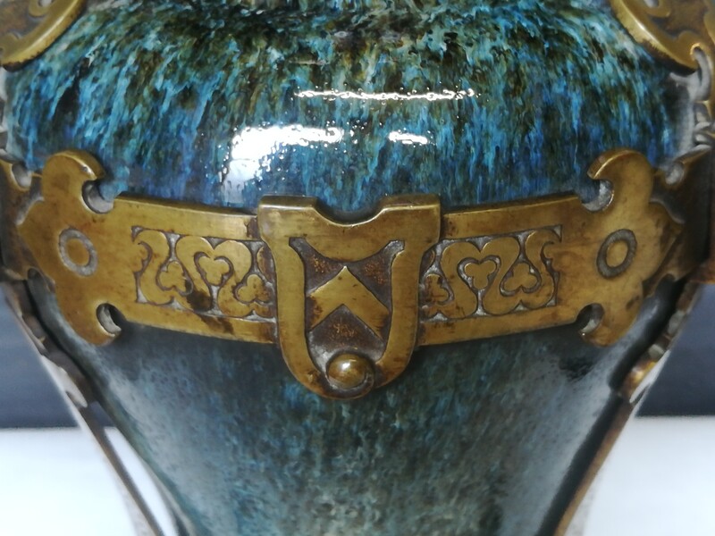 Pair of ceramic and bronze medieval vases