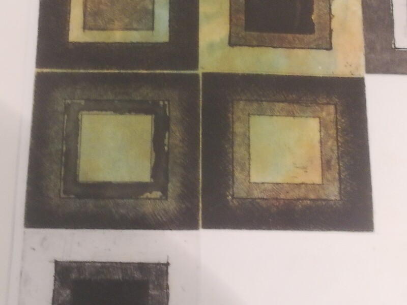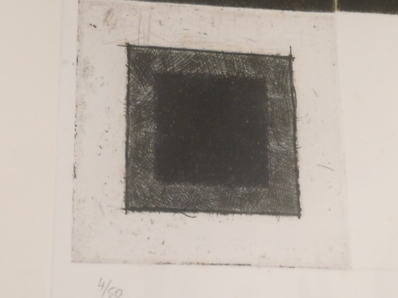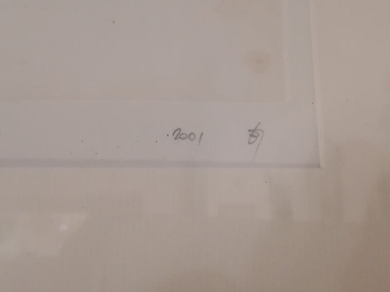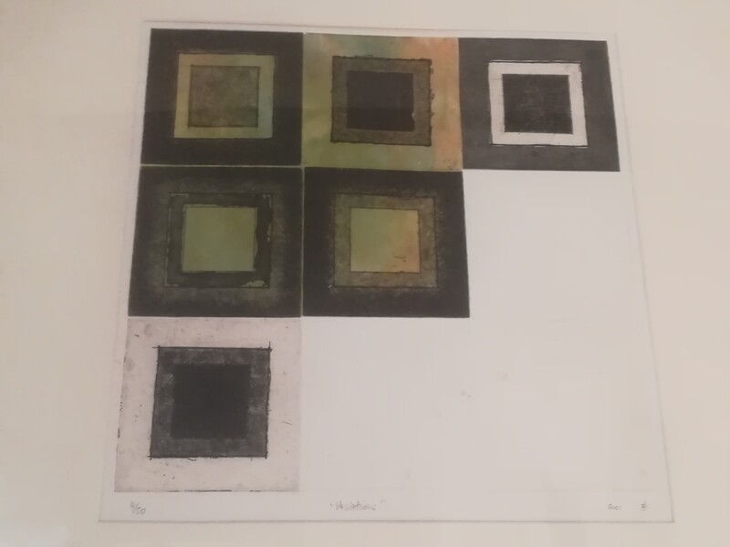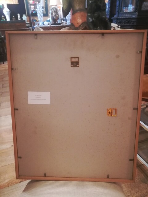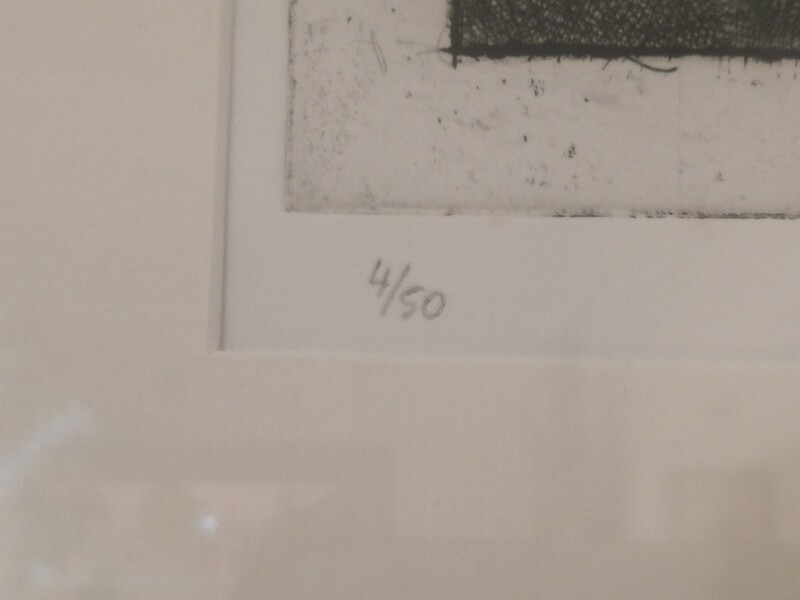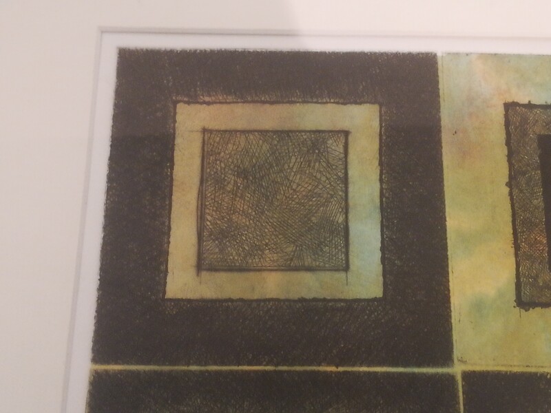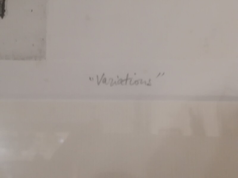 Etching heightened with watercolor "Variation 2" in wood glass frame