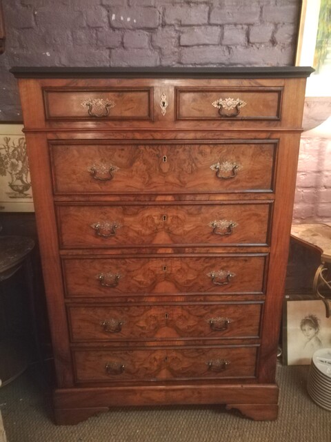 Burr and burl walnut veneer Louis Philippe style chest chiffonier
