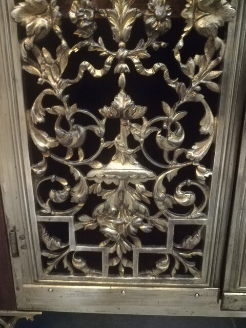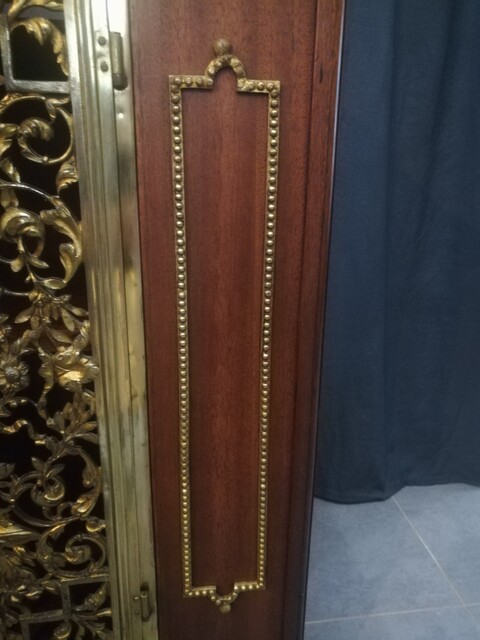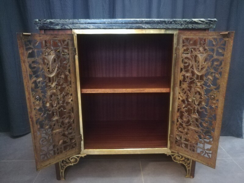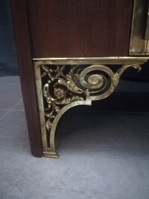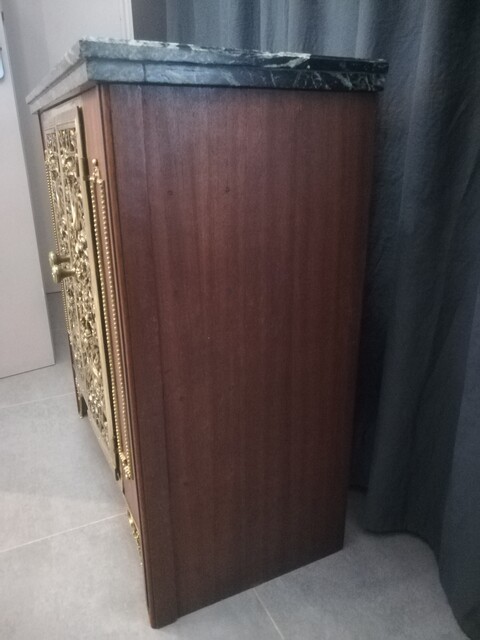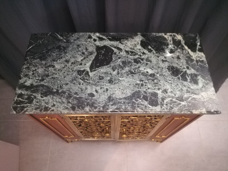 Mahogany veneer, bronze and marble top low dresser