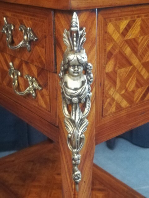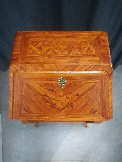 Inlaid and gilt bronze Louis XV style small lady writing desk