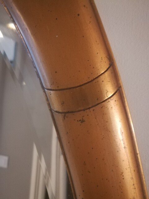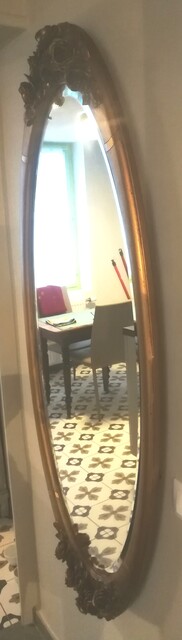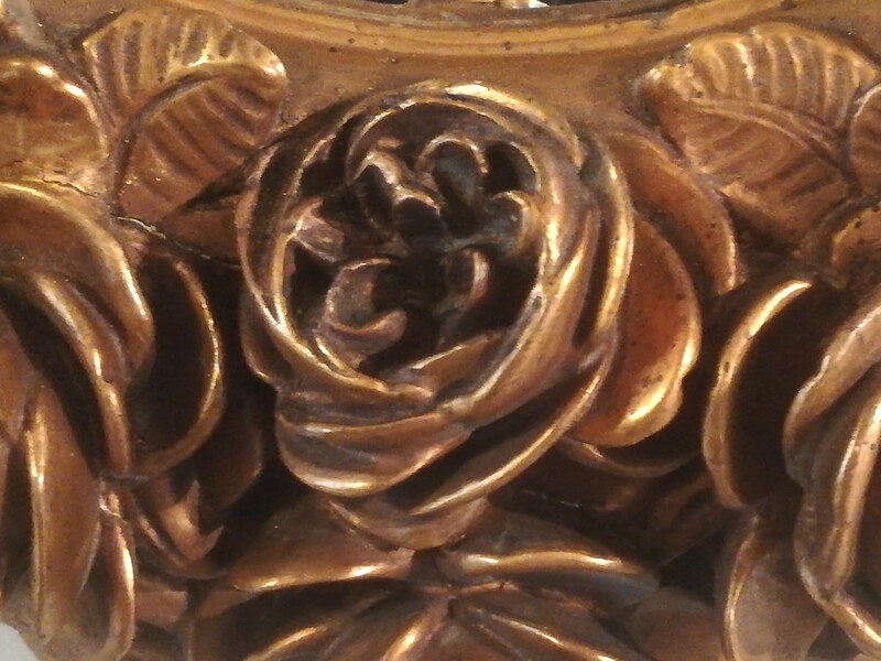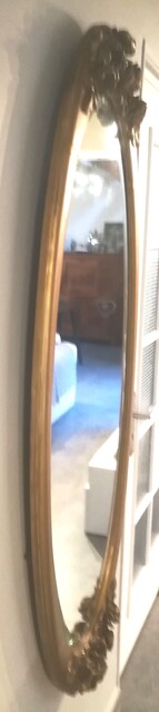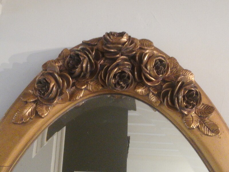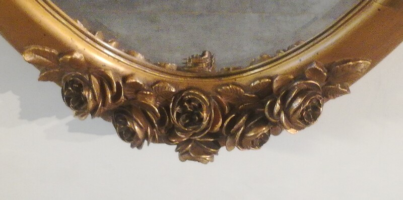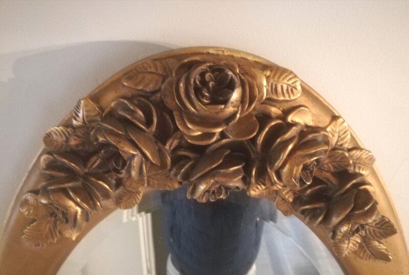 Gilt stucco roses and beveled glass art deco big oval mirror