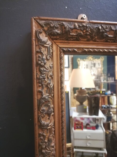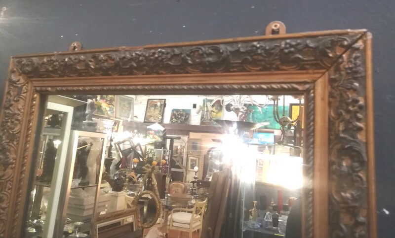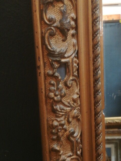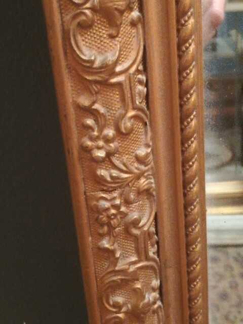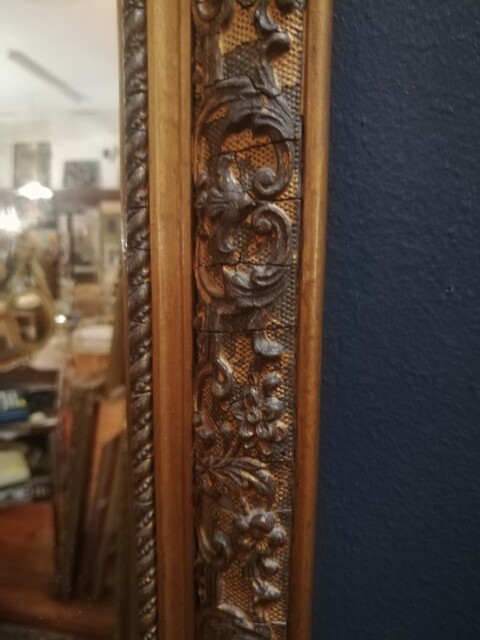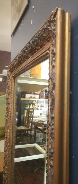 High and narrow gilt stucco mirror