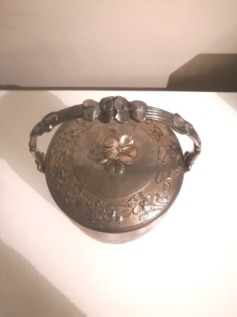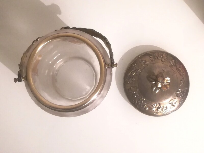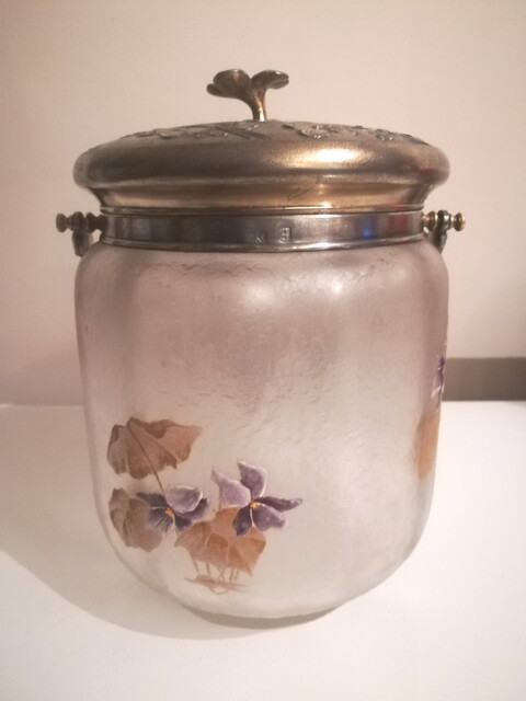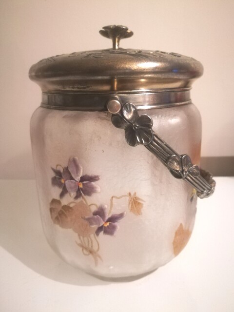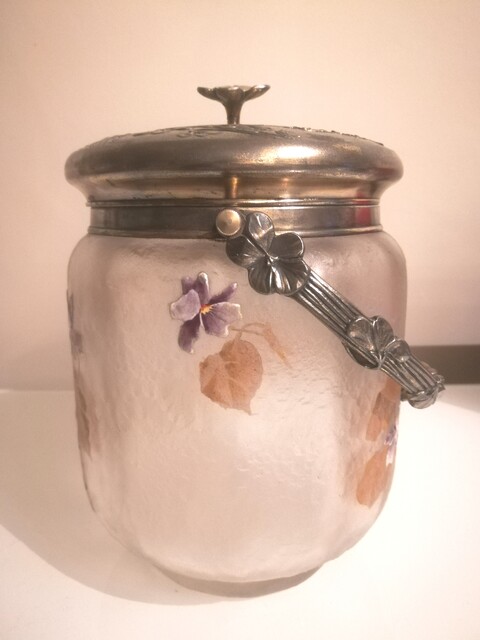 Frosted glass Legras and silver plated Gallia biscuit bucket