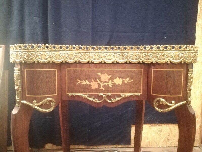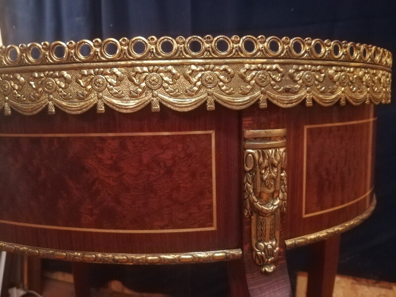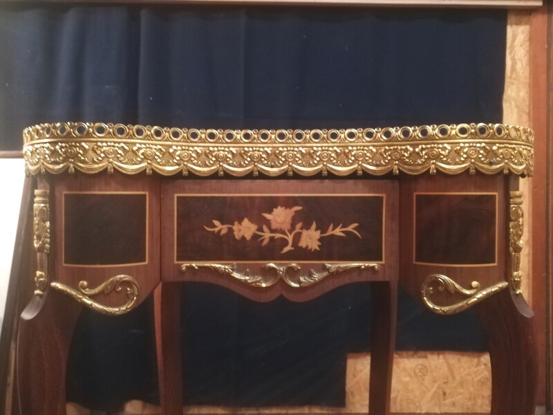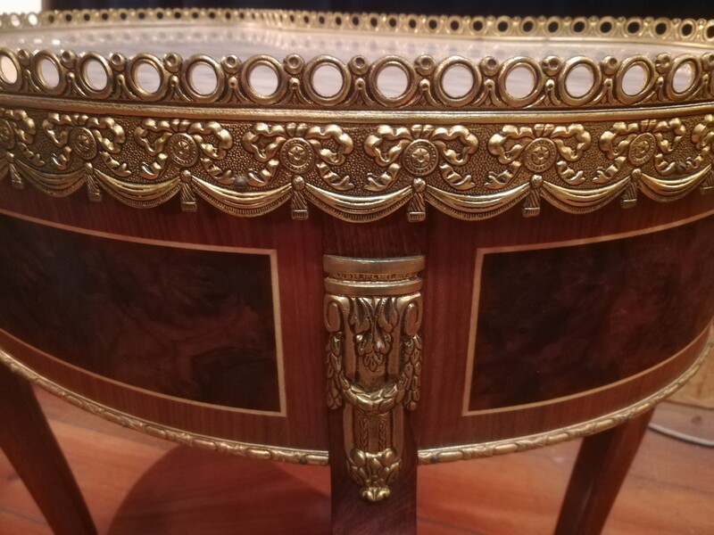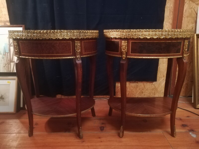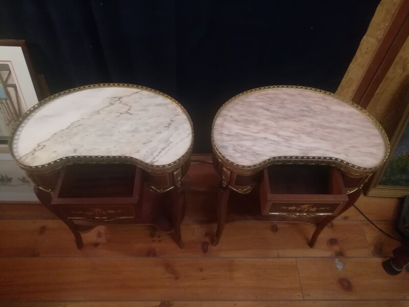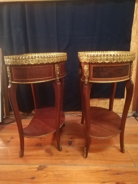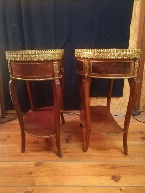 Pair of inlaid and gilded bronze Louis XV style kidney lounge tables