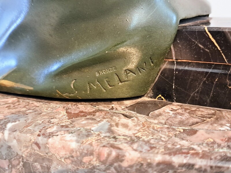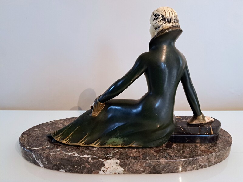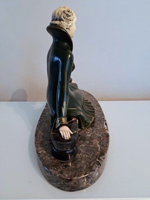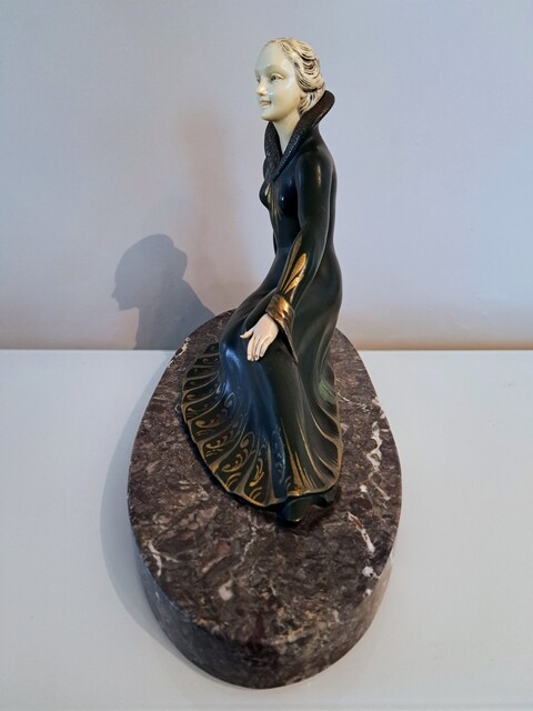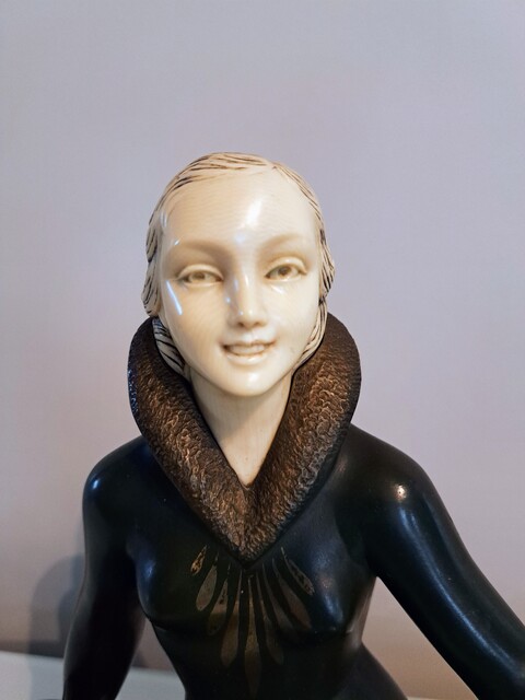 Art Deco sculpture in chryselephantine bronze/ivory + marble base