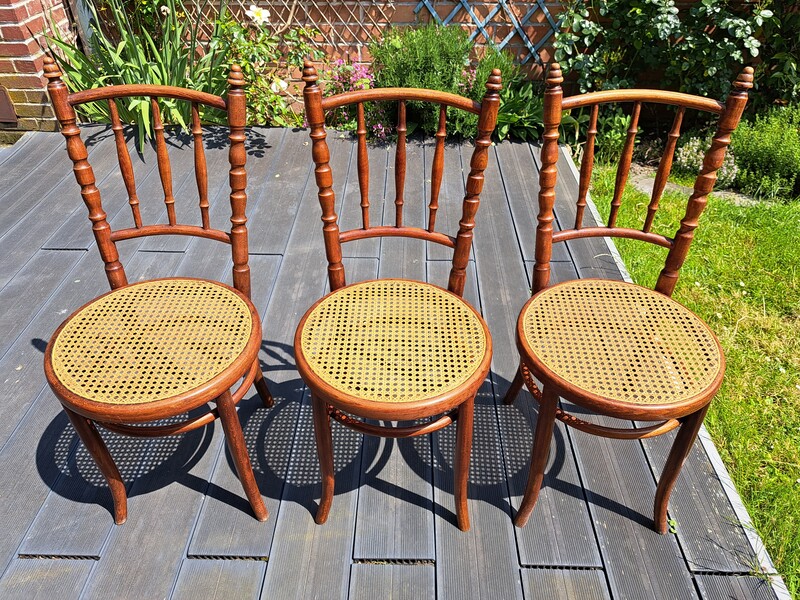 Set of 6 ash and caned Fischel chairs