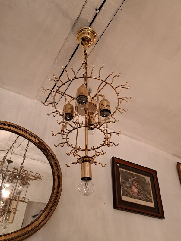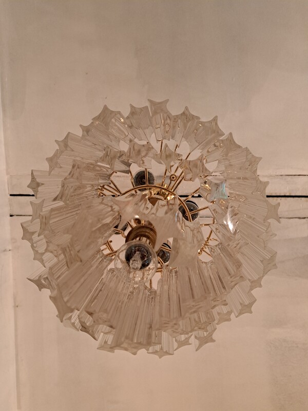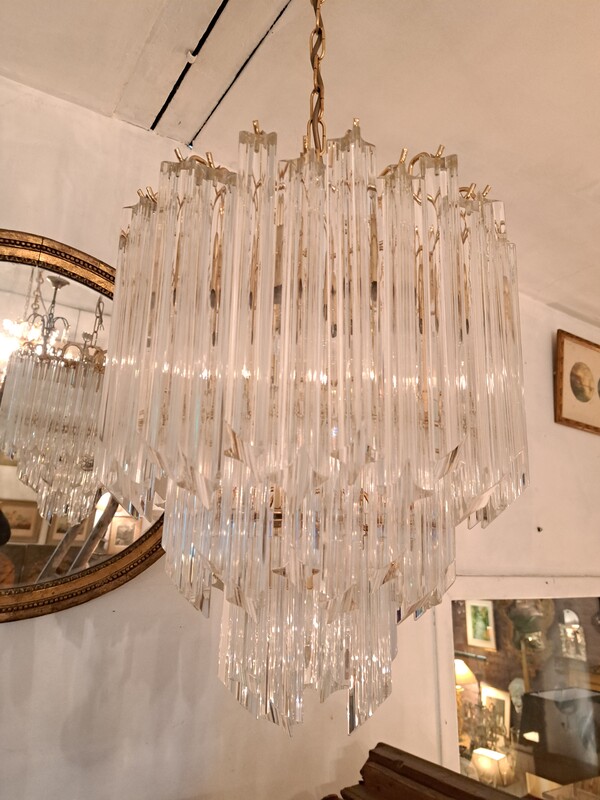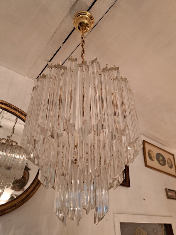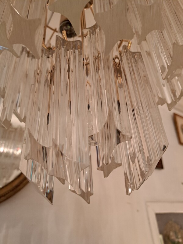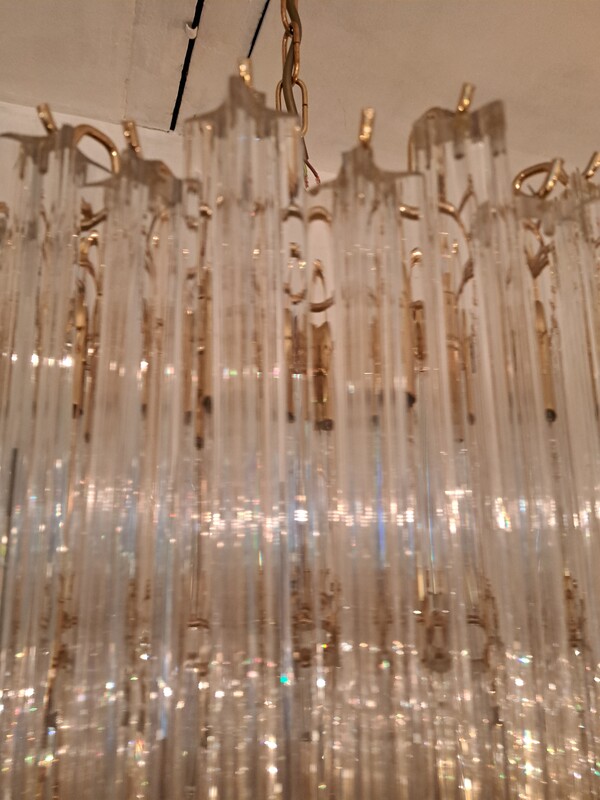 Gilt brass and crystal pendants Murano cascade chandelier