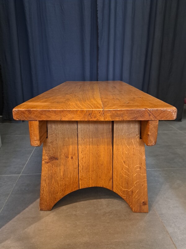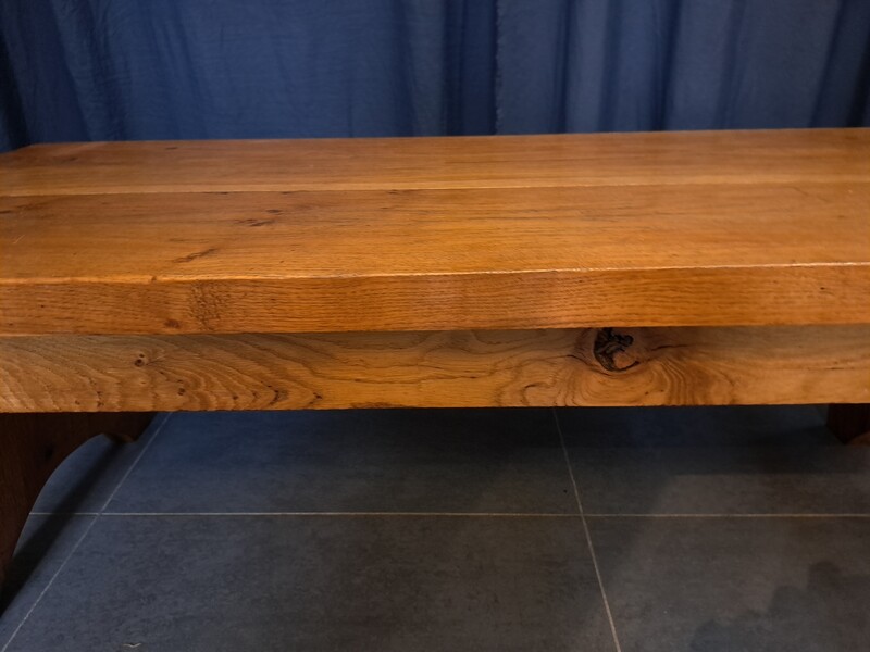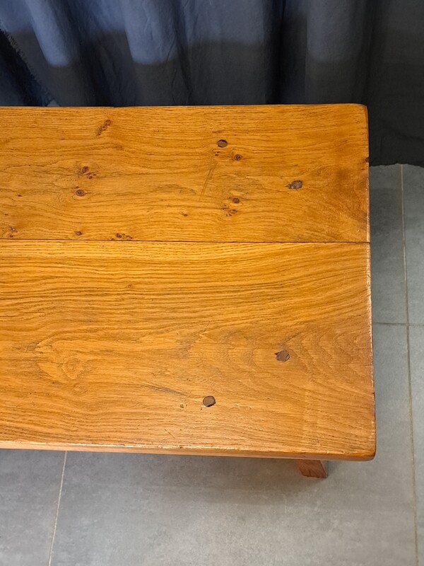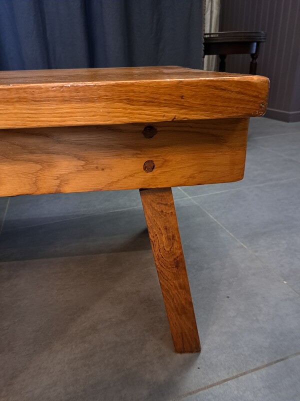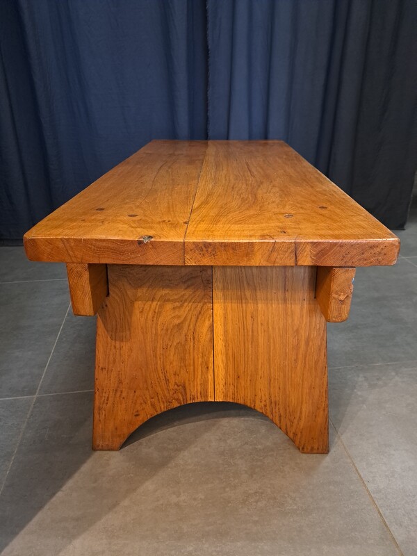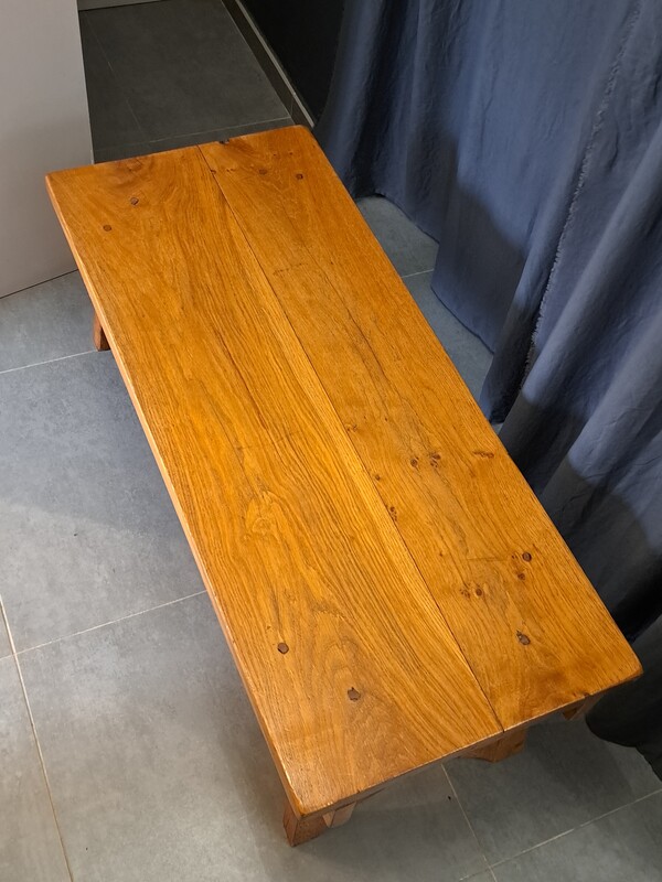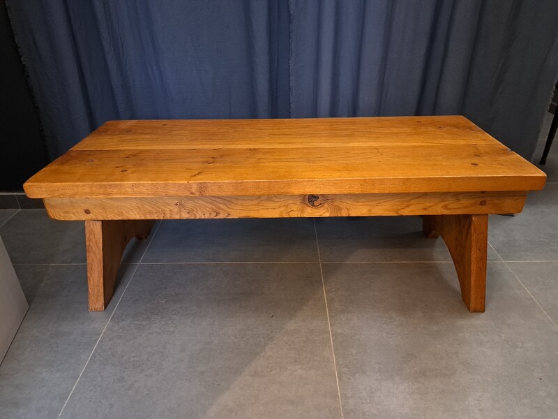 Brutalist coffee table in varnished solid elm