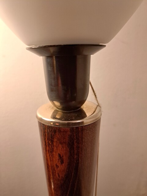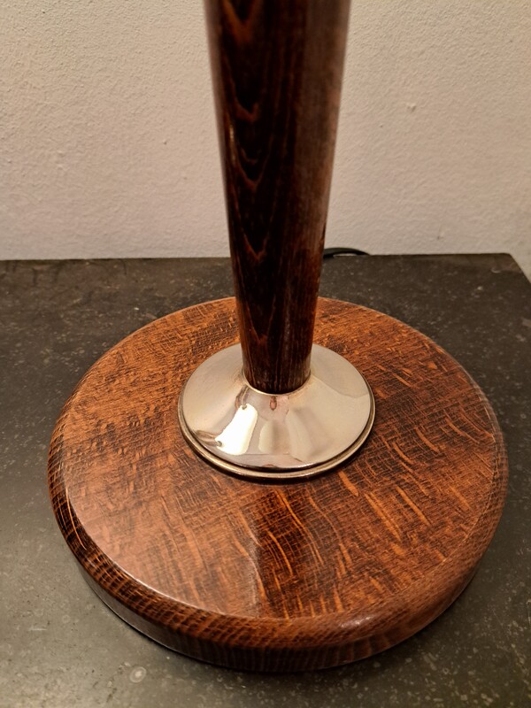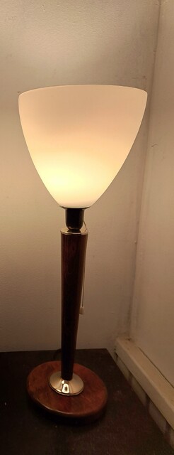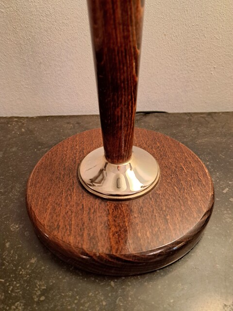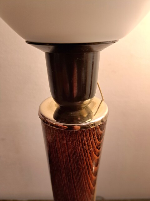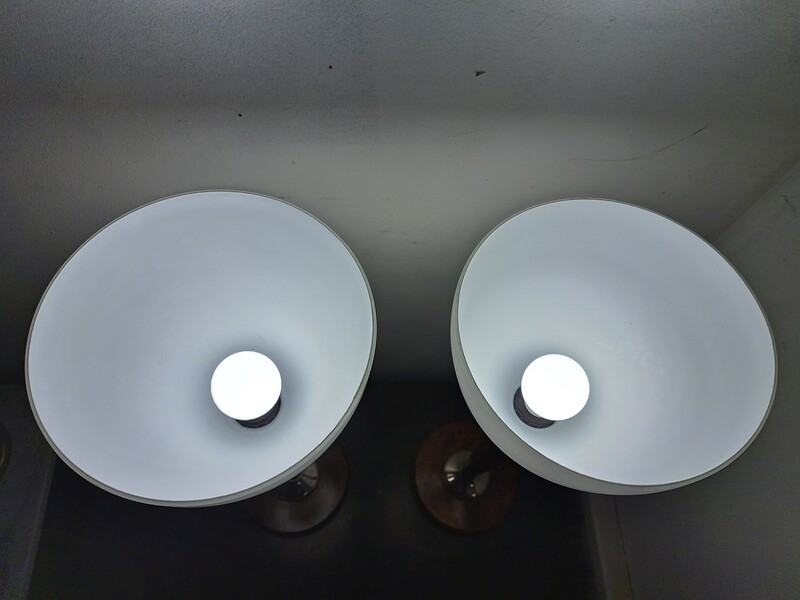Pair of wooden and gilt brass Unilux opaline tulip lamps