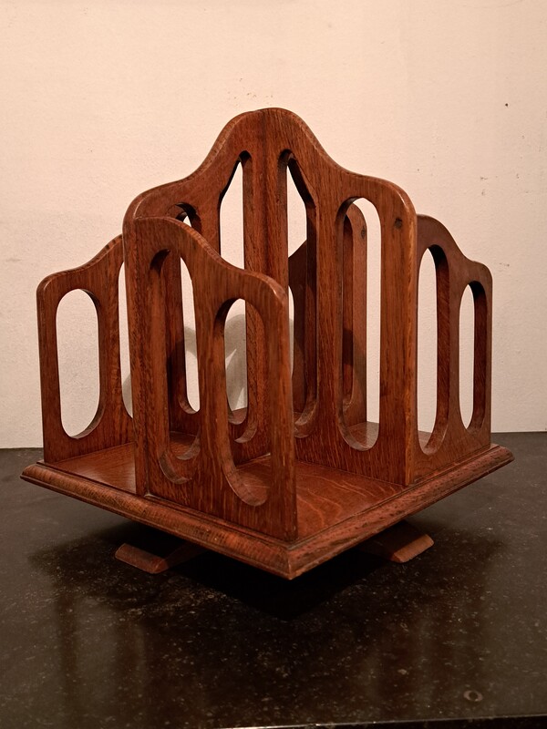 Small oak varnished Art Nouveau revolving bookcase