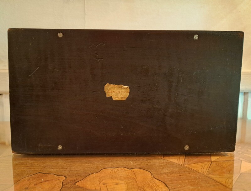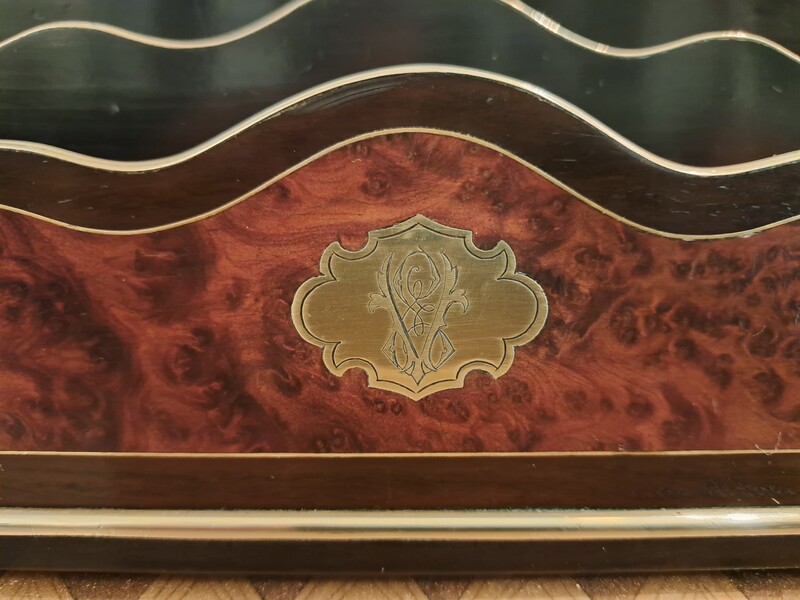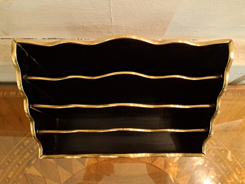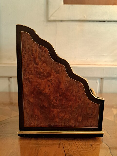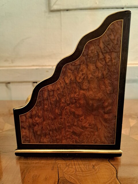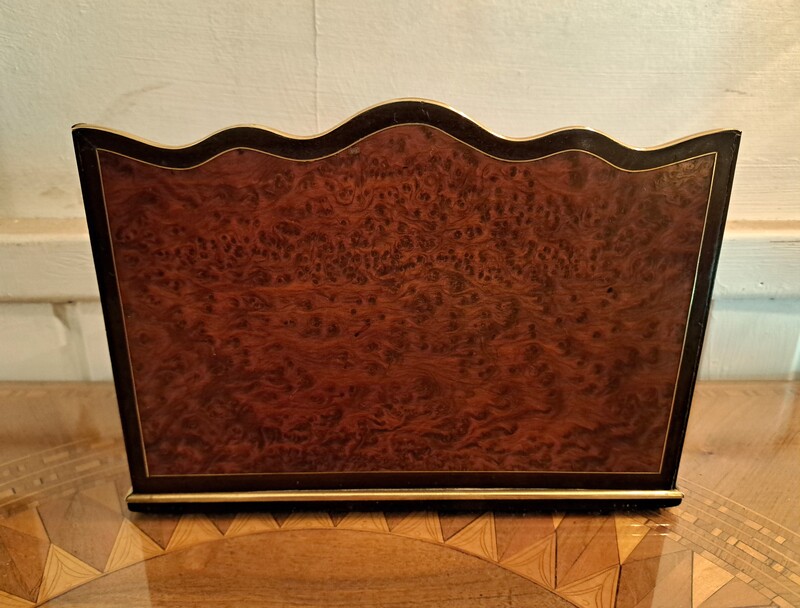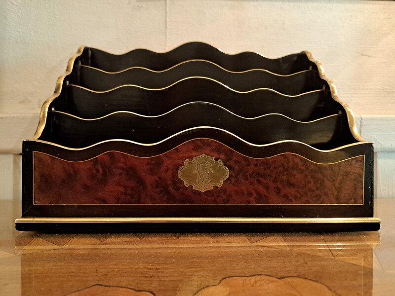 Napoleon III mail holder in blackened pear wood, thuja burl and brass