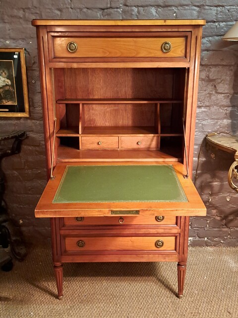 Louis XVI style secretary in solid cherry wood and gilt bronze
