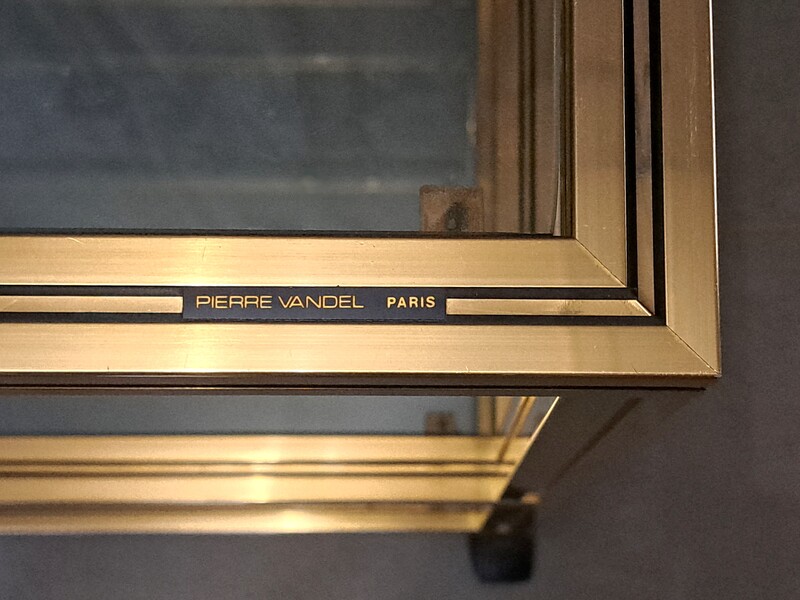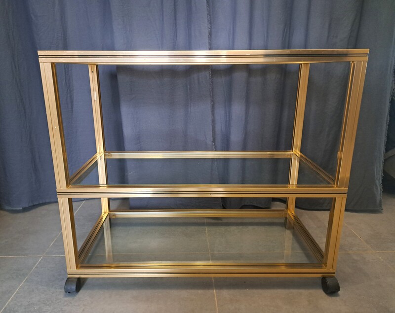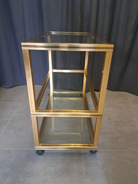 Pierre Vandel rolling trolley in gold aluminum with 3 glass shelves