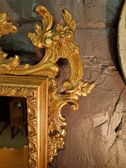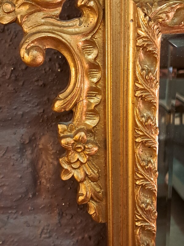 Roccoco style beveled mirror in gilded wood