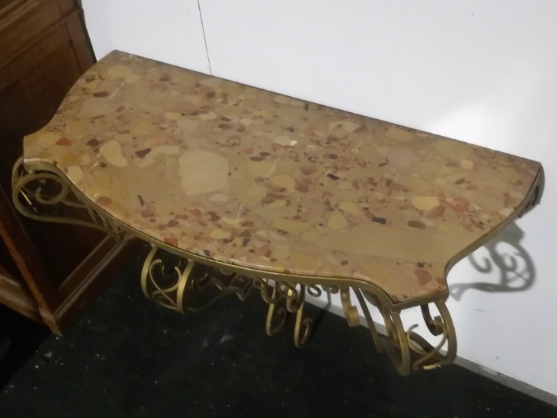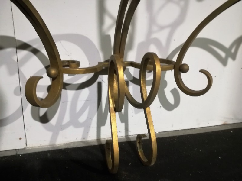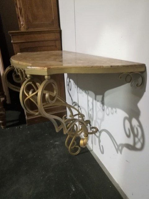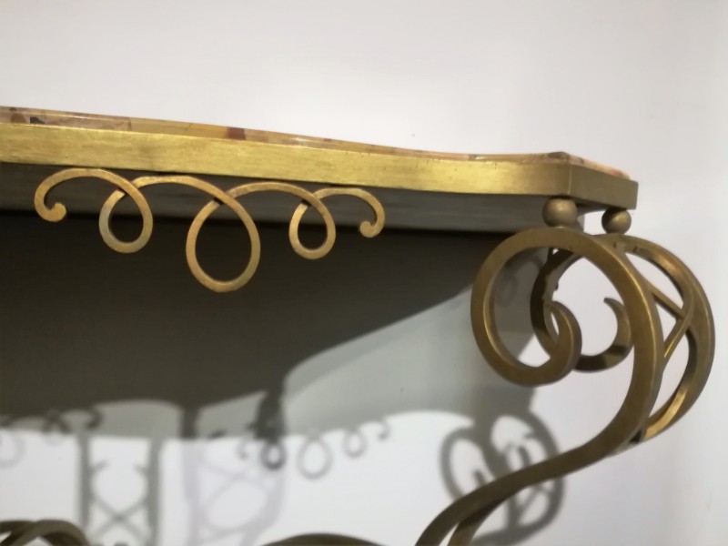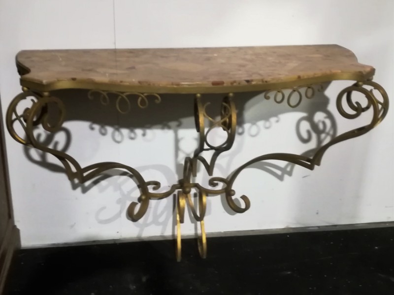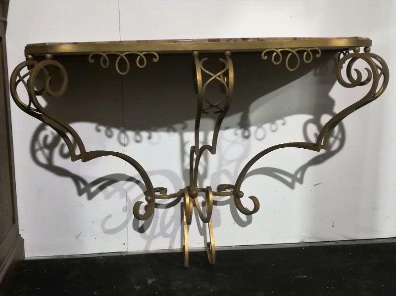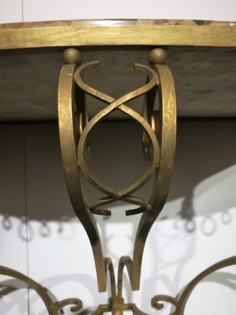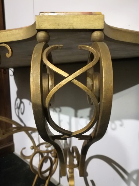 Art déco gilt iron wrought and marble top console