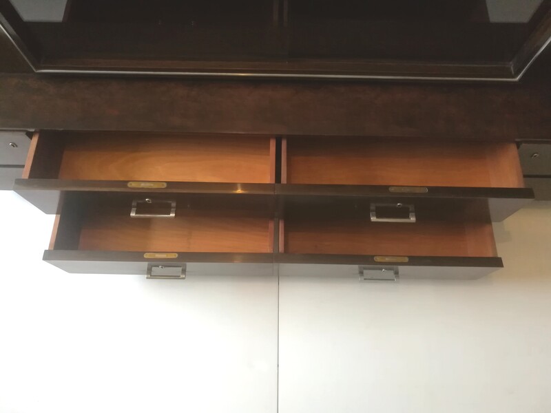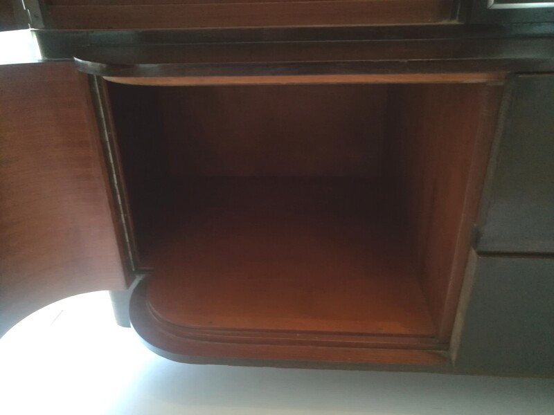 Rosewood and burl walnutt art deco glass bookcase